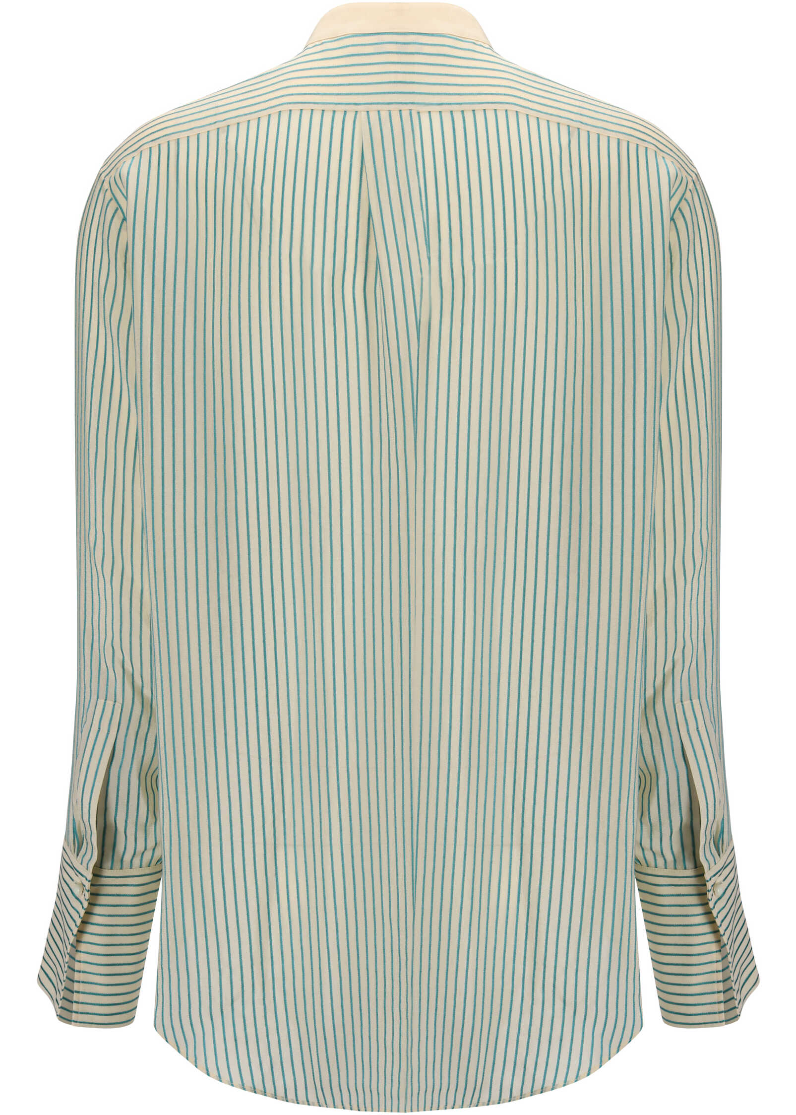 Silk Shirt by Chloé, contrasting mandarin collar, button-front closure, button-adjustable cuffs, two-tone striped pattern, regular fit.