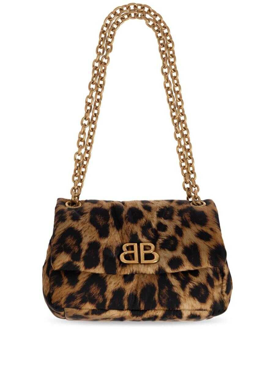 brown multicolour cotton gold-tone logo plaque padded design all-over leopard print foldover top with magnetic fastening chain-link shoulder strap main compartment