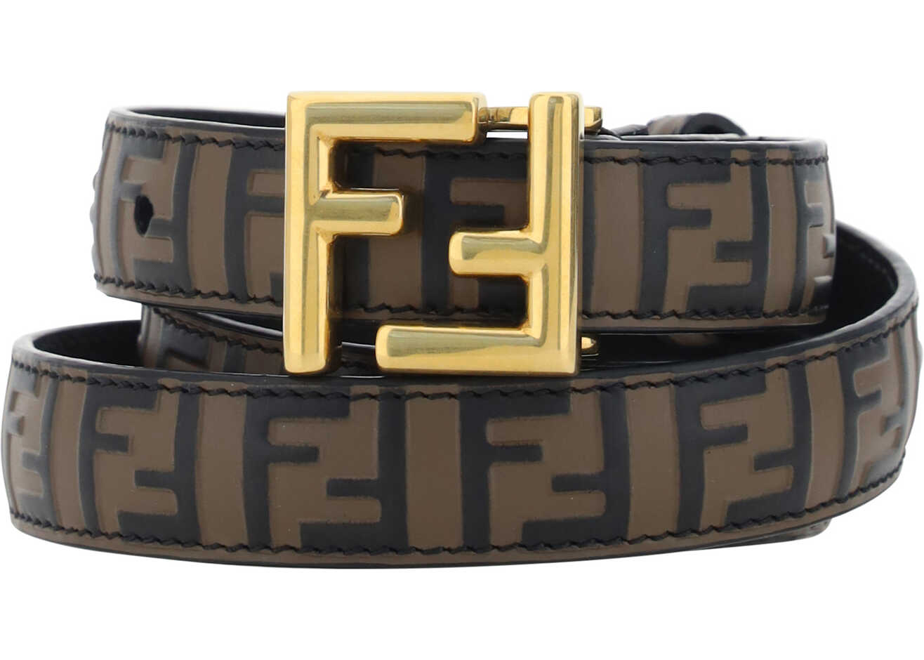Leather Belt by Fendi, front metal buckle with iconic brand logo, iconic brand monogram printed all-over.