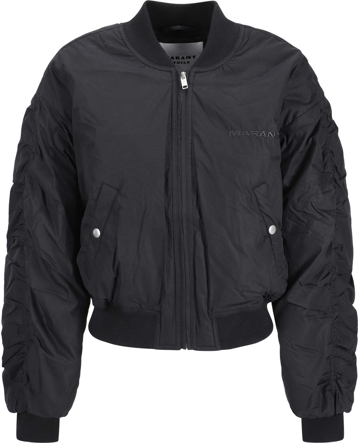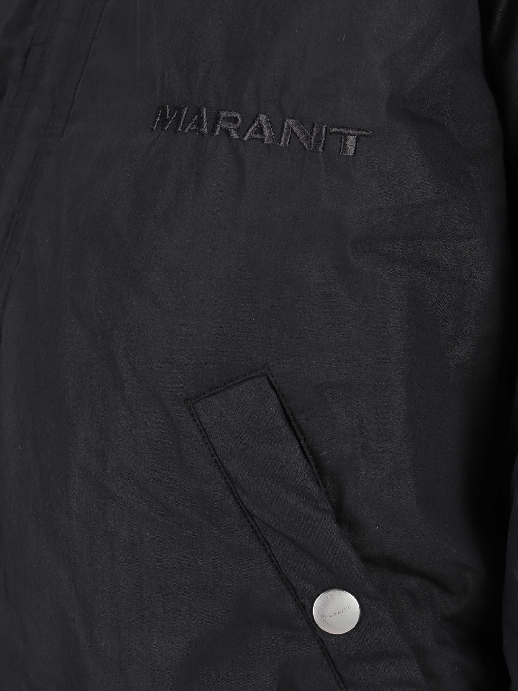 Cotton Bessime Jacket by Marant Etoile, featuring all-over quilted design, all-over quilted design, ribbed crew neck, zipper front closure, two welt pockets with snap button on front, iconic brand monogram embroidered on front panel, ribbed cuffs, ribbed hem, monochrome pattern, regular fit.