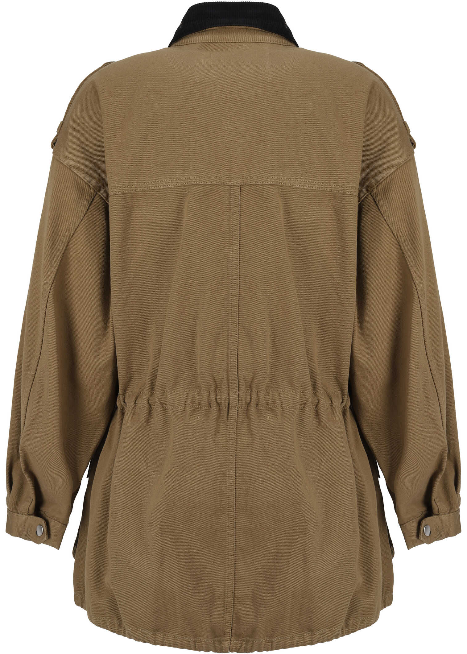 Cotton Joanna Jacket by Isabel Marant, double zipper and button closure, classic corduroy collar, two front patch pockets that can be closed with buttons, two front welt pockets that can be closed with a zipper at the top, adjustable hem with drawstring, adjustable buttons with buttons, elasticated waist, regular fit.