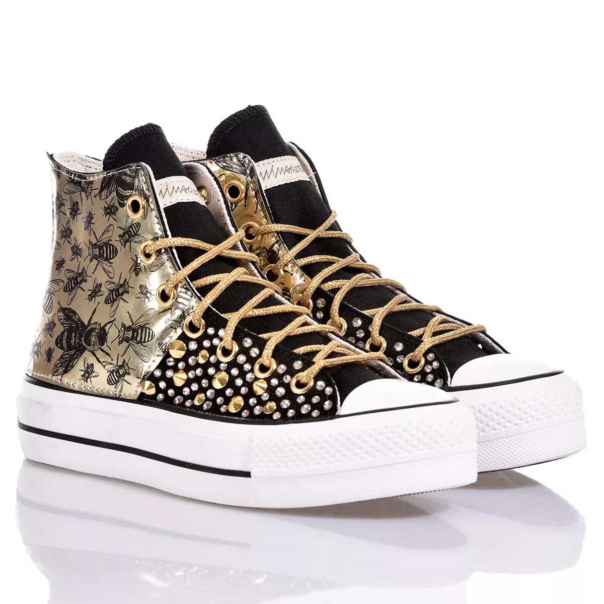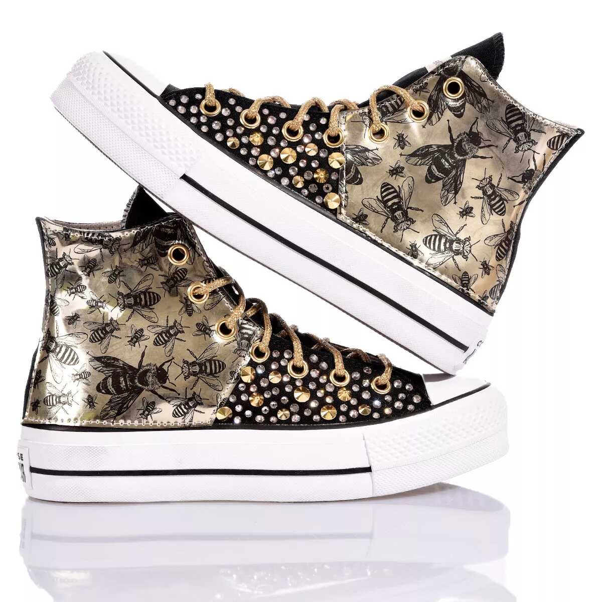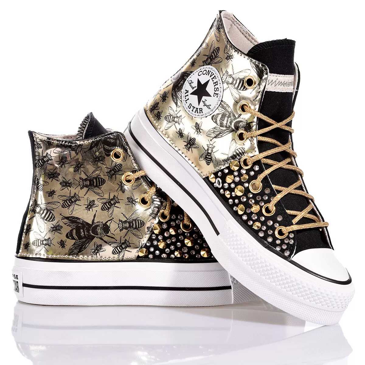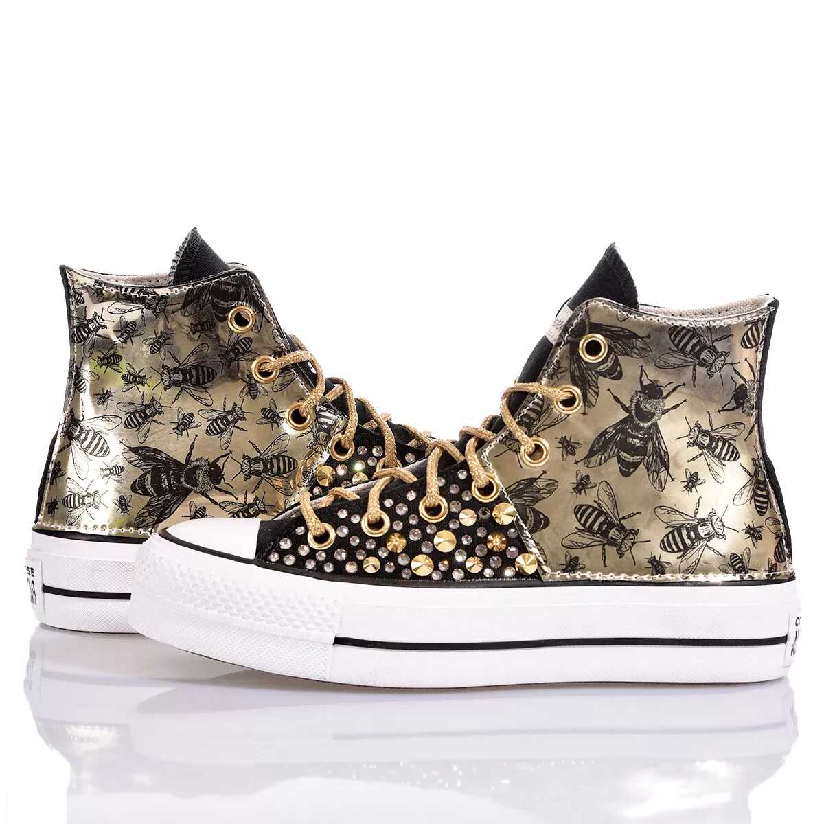 Elevate your style with the Converse Platform Black sneakers. Crafted from eco-leather and canvas, these handmade masterpieces are a unique addition to your wardrobe. Stand out in comfort and style with the iconic CONVERSE brand. Perfect for women who appreciate individuality and quality craftsmanship.