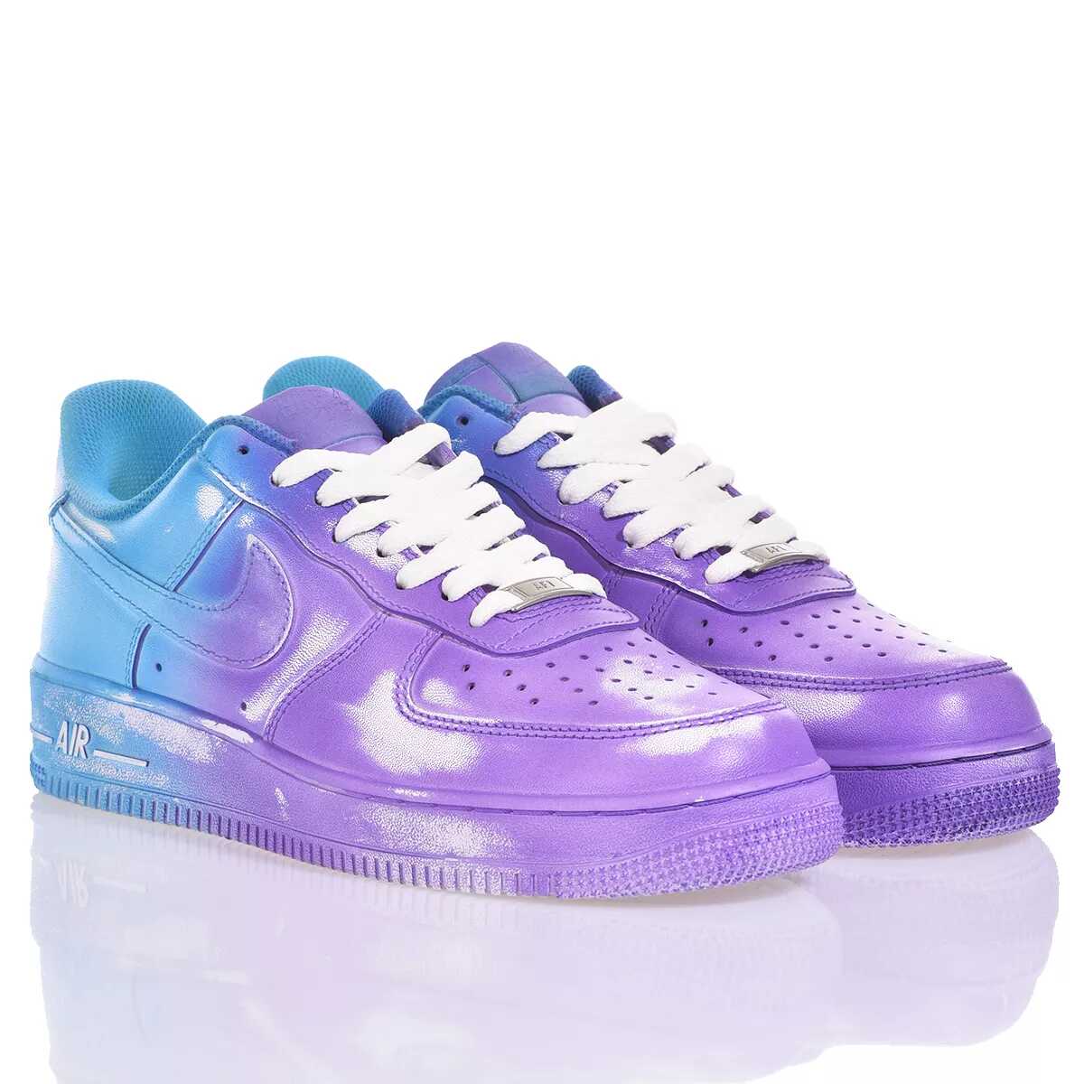 Step up your style game with the Nike Air Force 1 in Light blue, Blue, Violet. Handcrafted by our skilled artisans, each pair is a unique masterpiece. Made from eco-leather, these sneakers are a perfect blend of style and sustainability. Elevate your look with the iconic NIKE brand.
