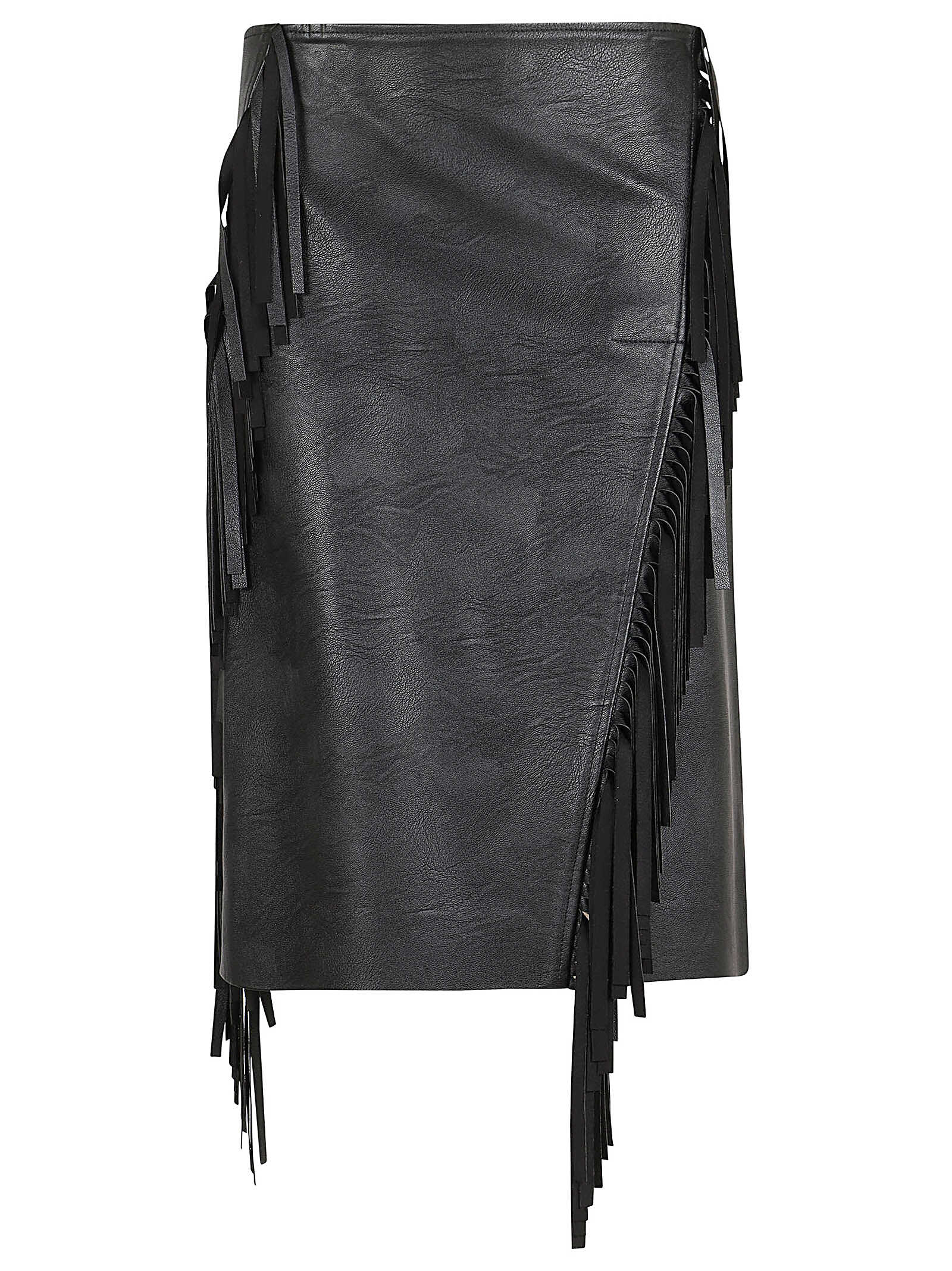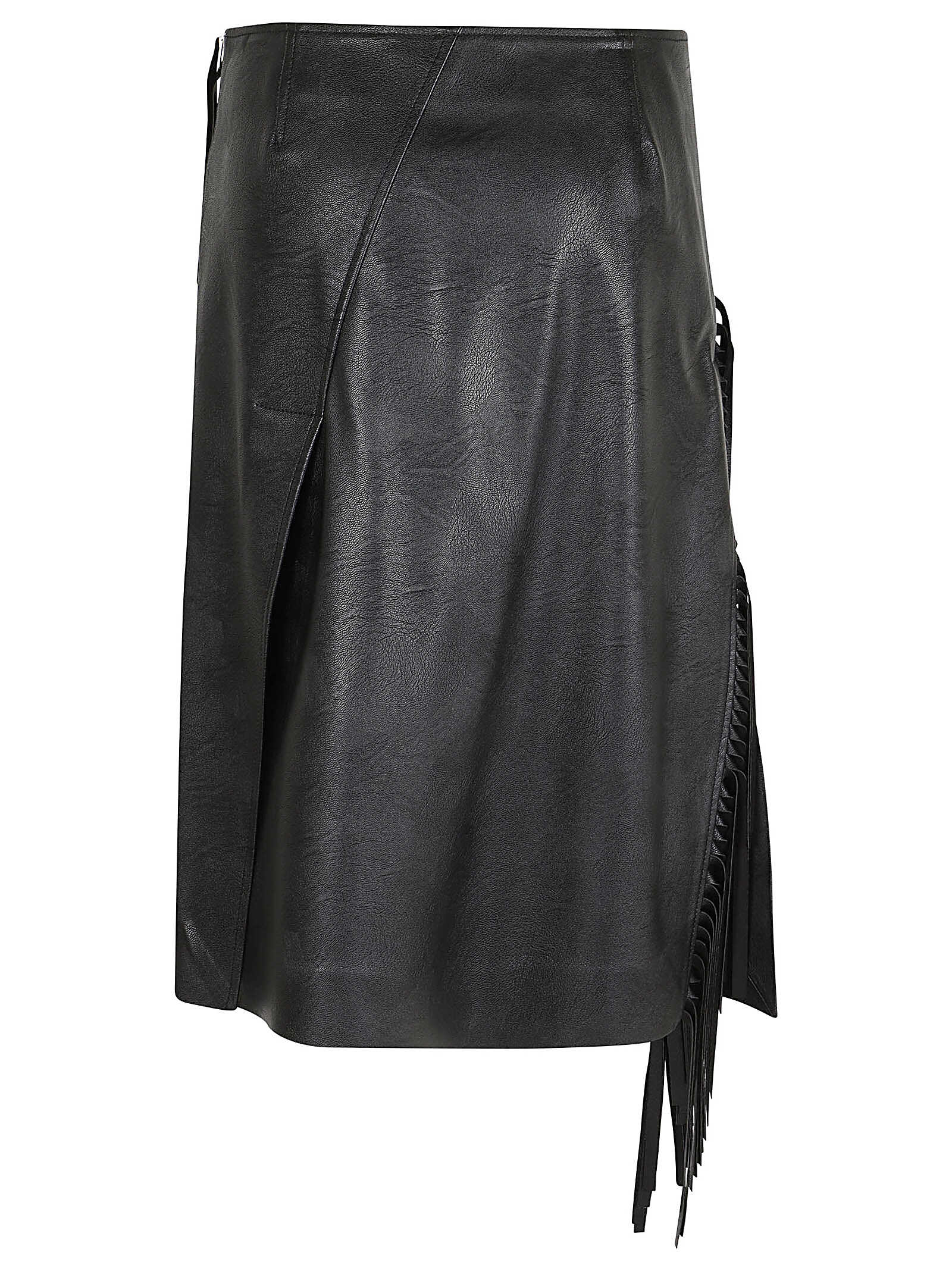Elevate your style with this sophisticated black skirt by Stella McCartney. Crafted with a soft alternative to leather, featuring a high waist, zip closure, and a slightly flared design with knee-length hem. The asymmetrical stitching detail with fringes adds a touch of uniqueness. Perfect for any occasion, this skirt offers a regular fit and is made of 62% polyester and 38% viscose. Make a statement with Stella McCartney.