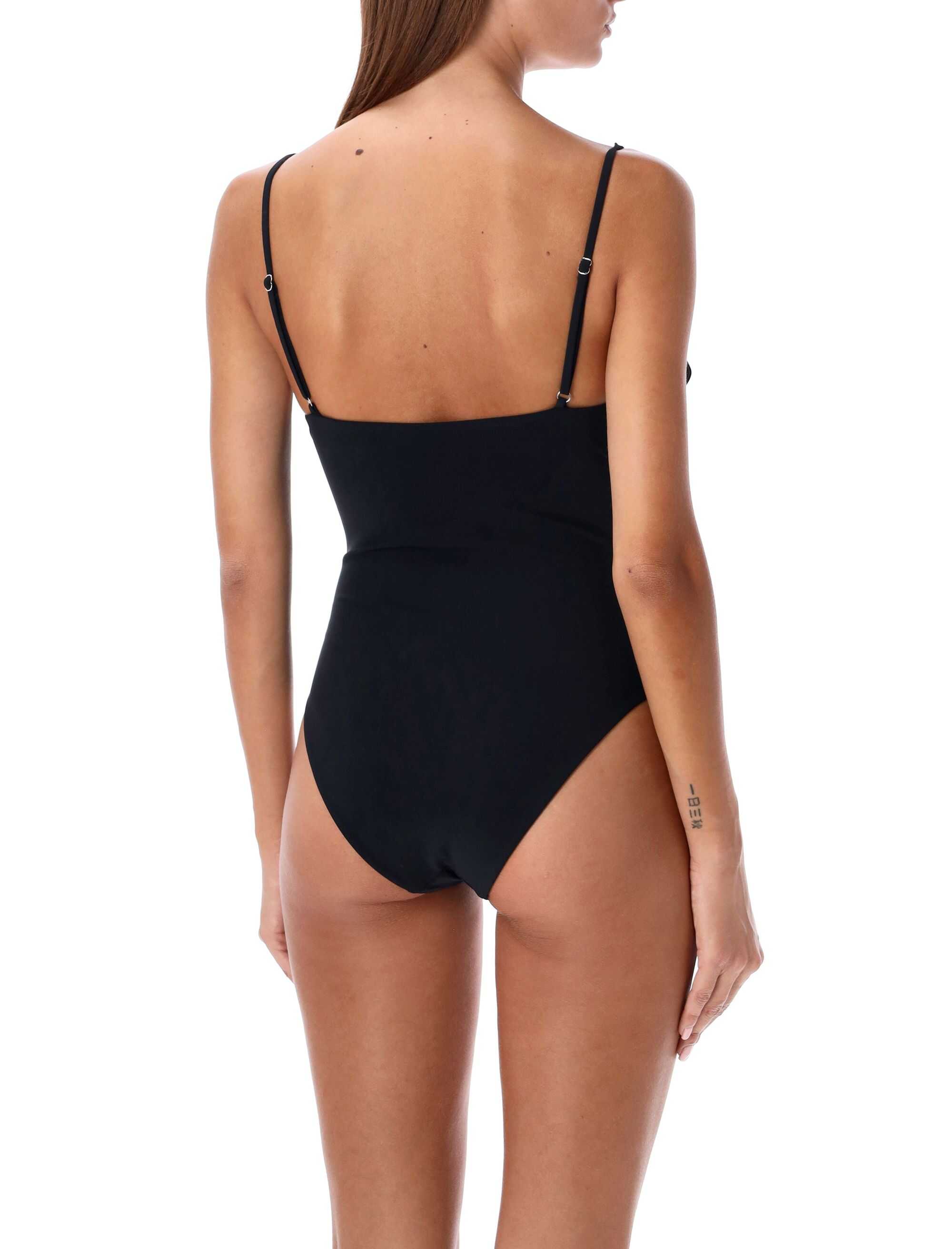 Make a statement with this elegant black swimsuit by Magda Butrym. The high-leg design and bustier underwire bra offer a flattering fit, while the 3D flowers add a touch of sophistication. Crafted from 72% polyamide and 28% elastane, this one-piece is perfect for poolside glamour. Embrace your inner goddess and stand out from the crowd in this must-have swimwear.