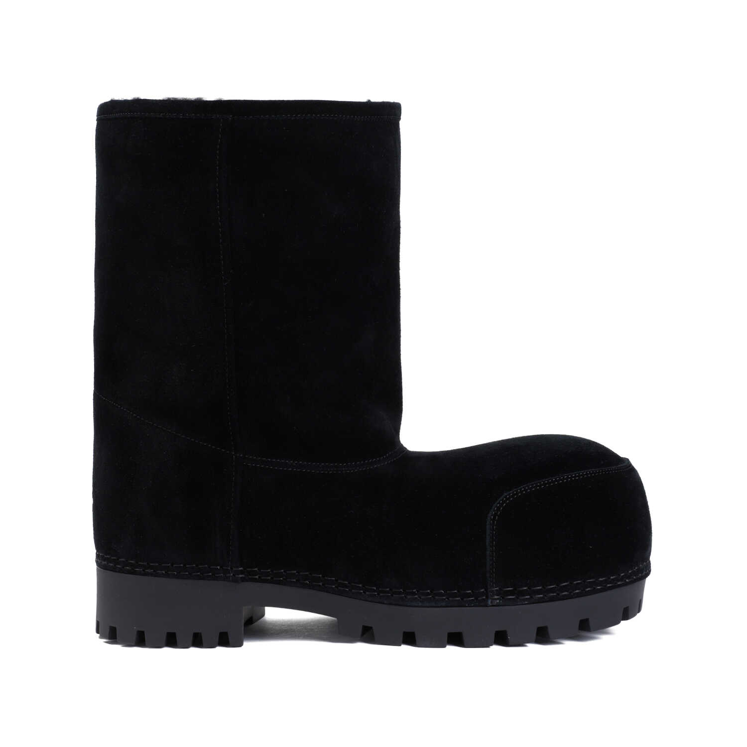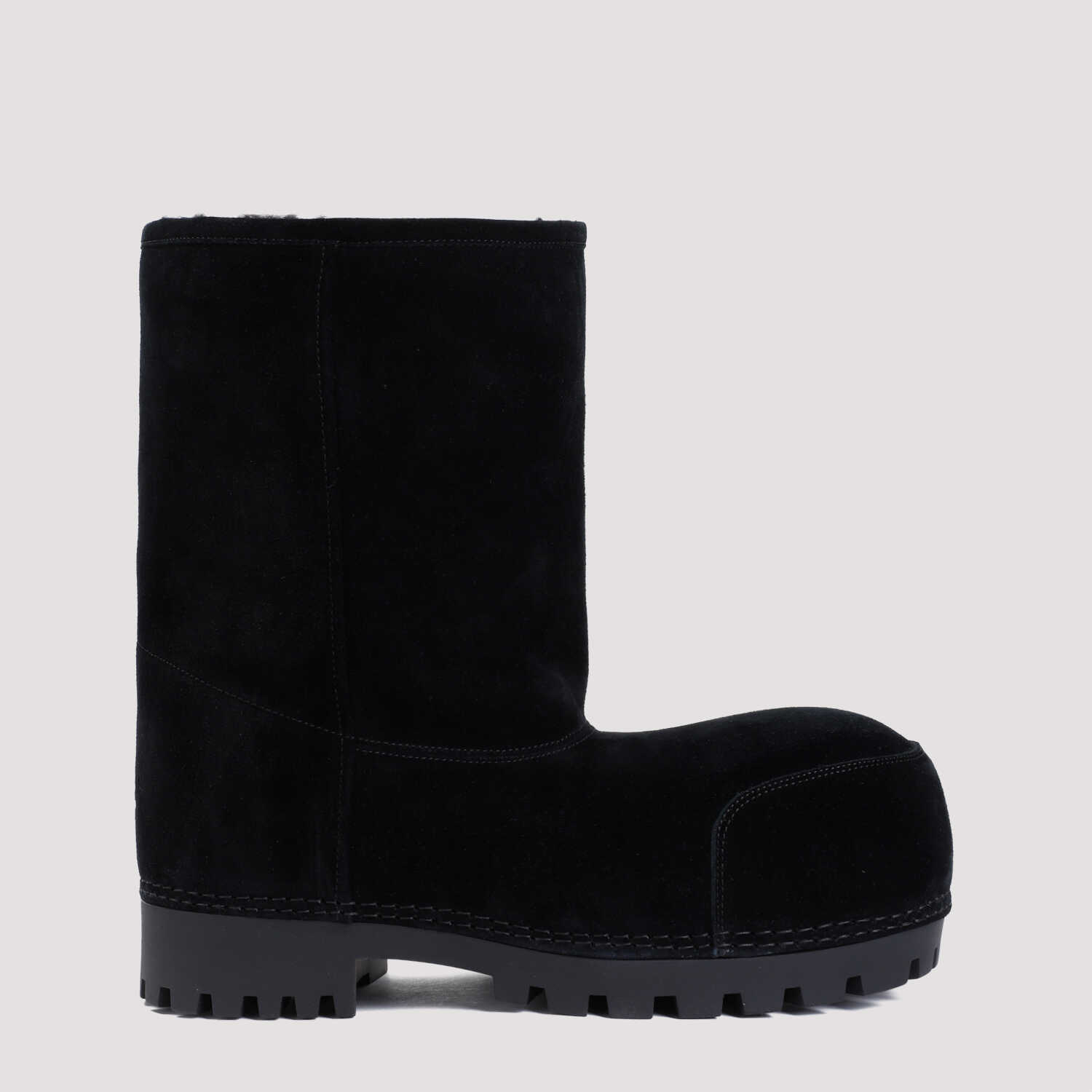 Step up your style game with these luxurious Balenciaga Alaska fur low boots. Crafted from premium black calf leather, featuring an exaggerated round toe and embossed logo detailing. Stay cozy with the warm fur lining and walk confidently on the monobloc rubber outsole. Elevate your look with these iconic ankle boots.