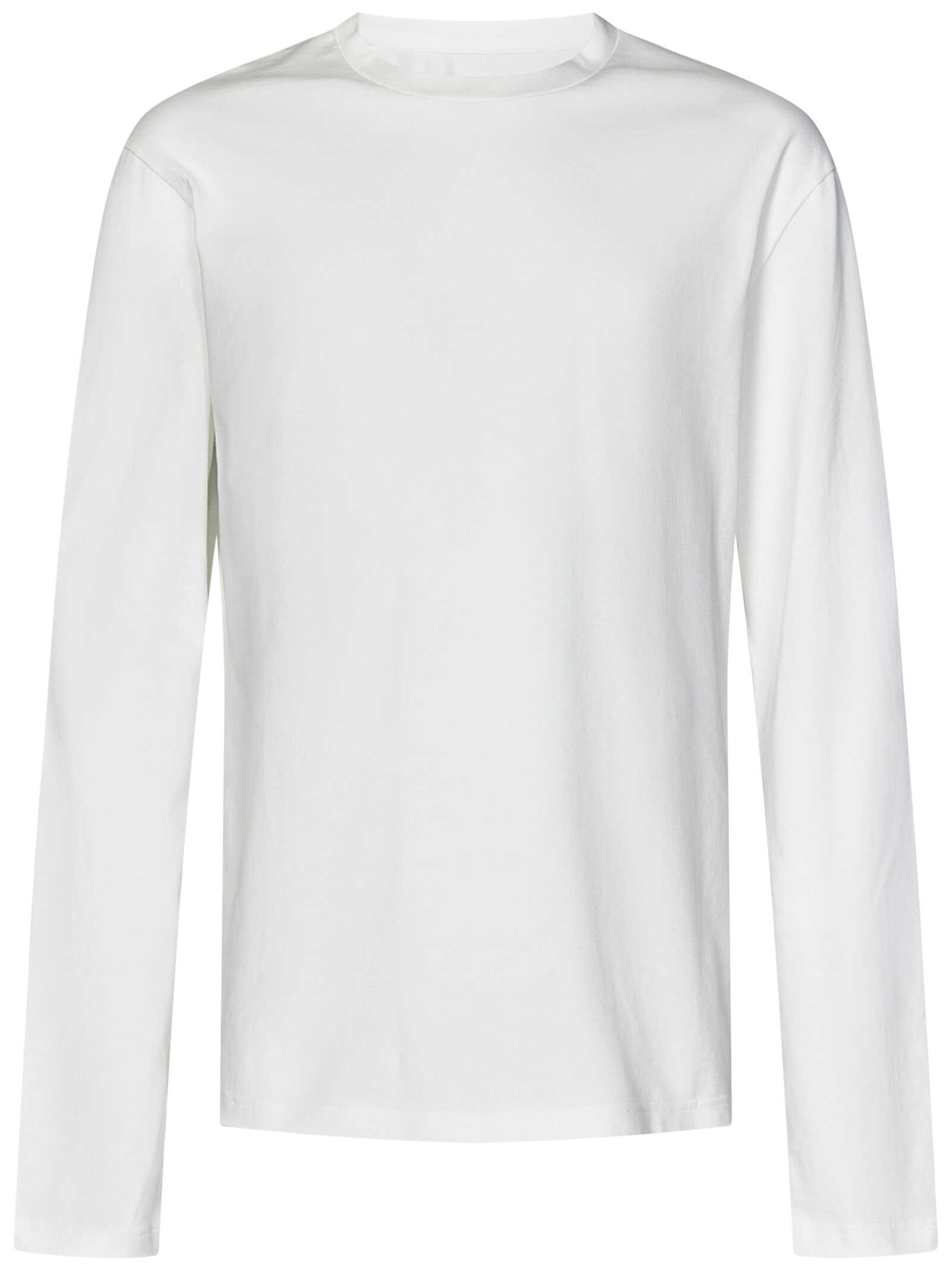 Coconut white cotton long-sleeved crewneck T-shirt with logo printed at back.