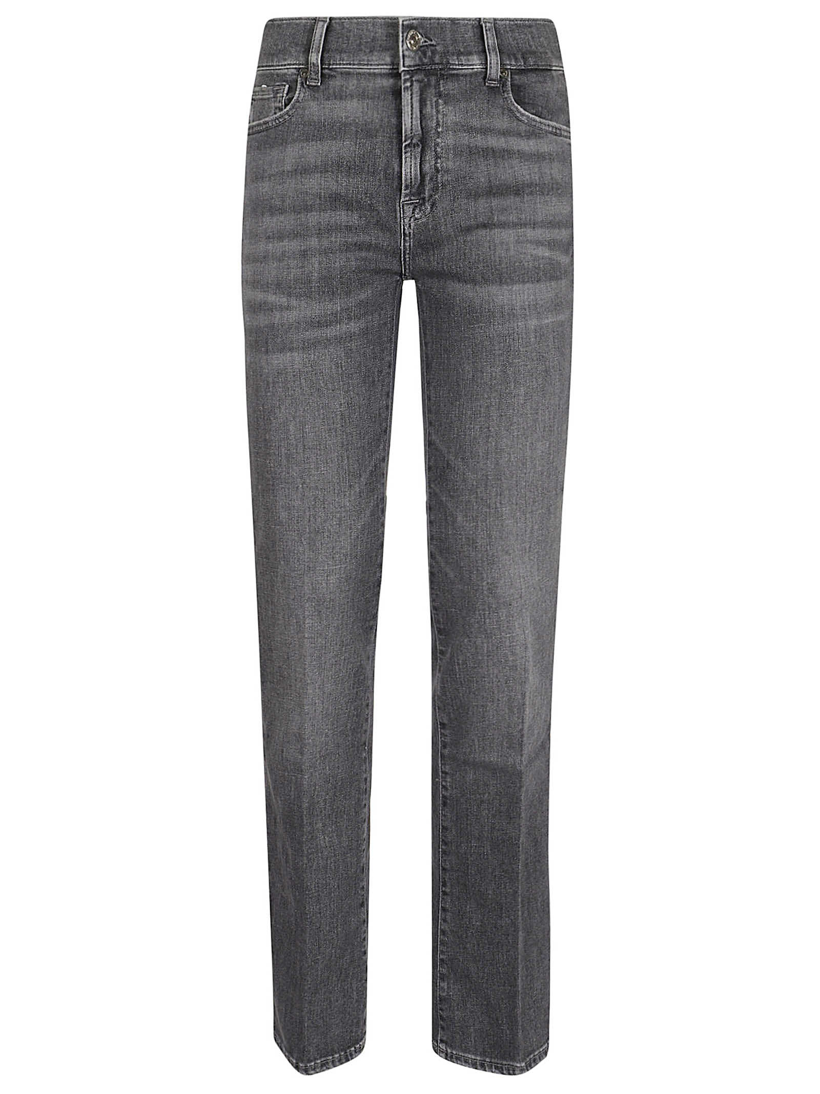 Step out in style with these Gray heritage denim bootcut jeans by 7 For All Mankind. Featuring a low rise and elongated silhouette design, these jeans offer a flattering fit. Made with a blend of cotton, polyester, and elastane, they are both comfortable and durable. Perfect for any occasion, these jeans are a must-have addition to your wardrobe. Elevate your look with 7 For All Mankind.