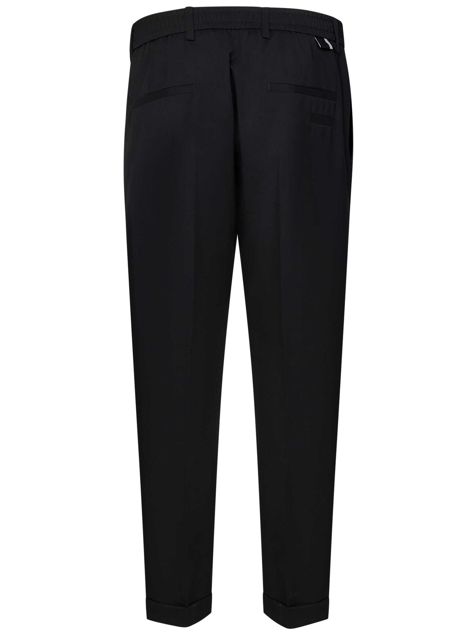 Rivera Elastic slim-fit trousers in fresh jet black wool with darts and partially elasticated waist.
