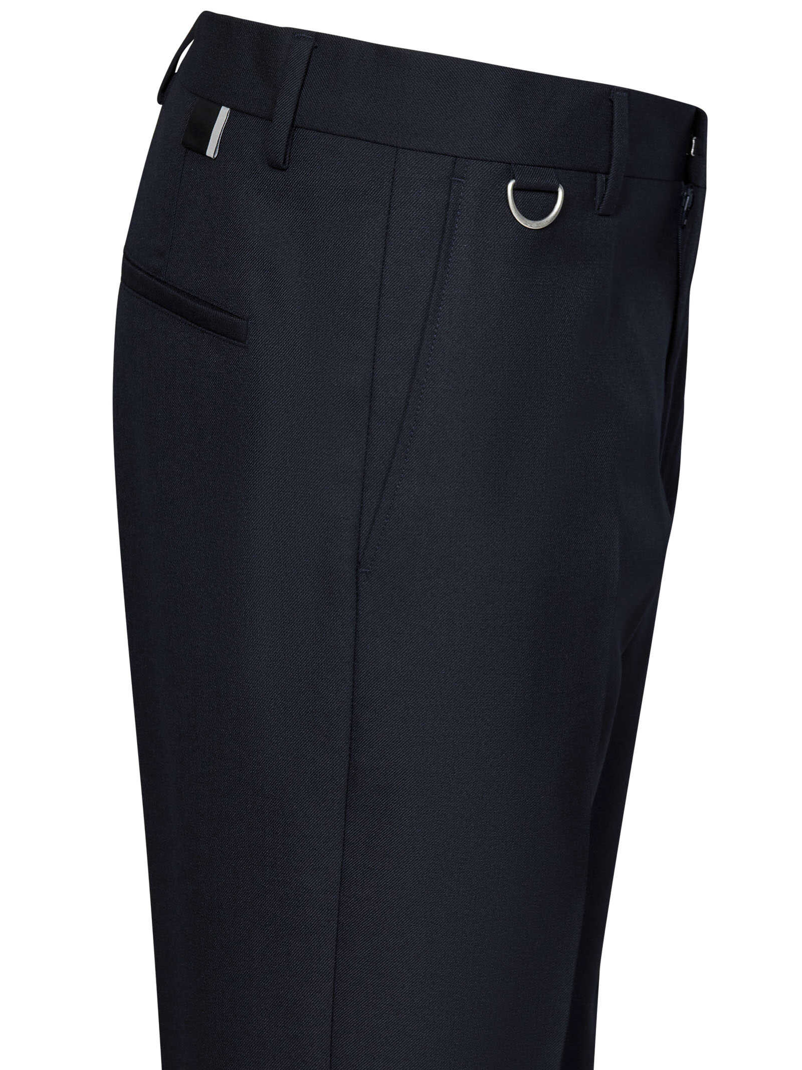 Ford tapered leg trousers in midnight blue virgin wool blend.