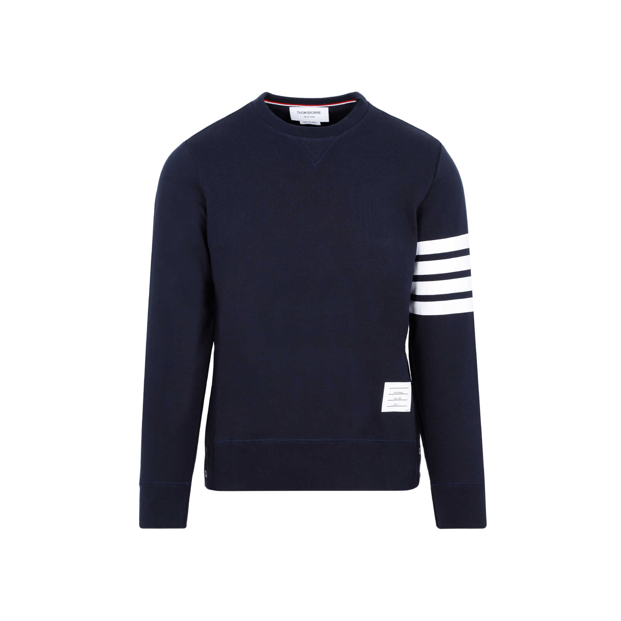 Elevate your style with the Thom Browne MJT021H.00535 sweatshirt. Crafted from 100% cotton, this classic navy sweatshirt features a crew neckline, long sleeves, and signature 4-bar stripes. Complete with a logo patch on the front, ribbed cuffs, and waistband for a comfortable fit. Perfect for casual outings or layering with your favorite pieces. Stand out in style with this must-have Thom Browne piece.
