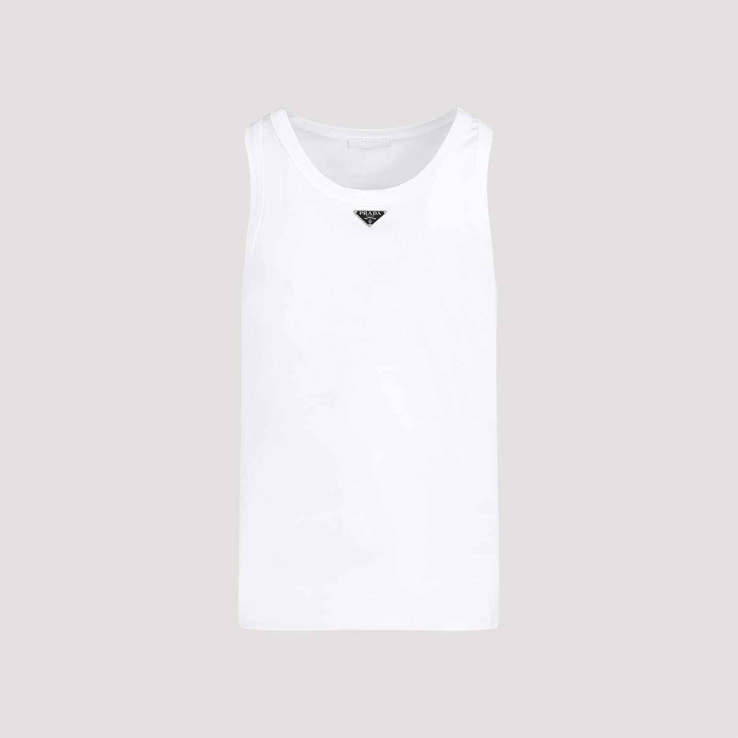 Prada White Cotton Tank Top. Crafted in pure white cotton, rounded neckline, sleeveless, enameled triangle logo on the front, straight hem.