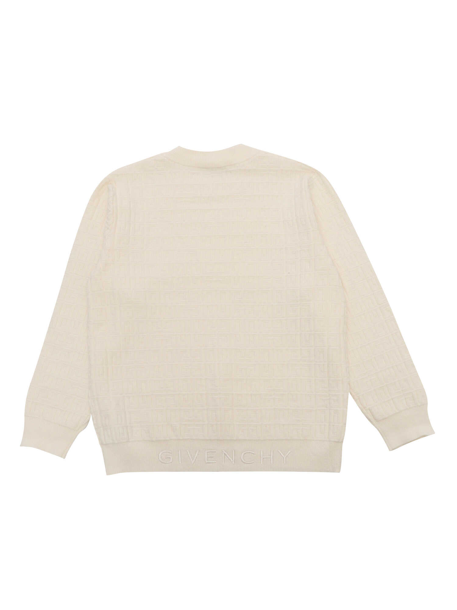 Knitted sweater, 95% cotton 5% cashmere, 4G totally jacquard pattern, Givenchy embroidery on bottom back.