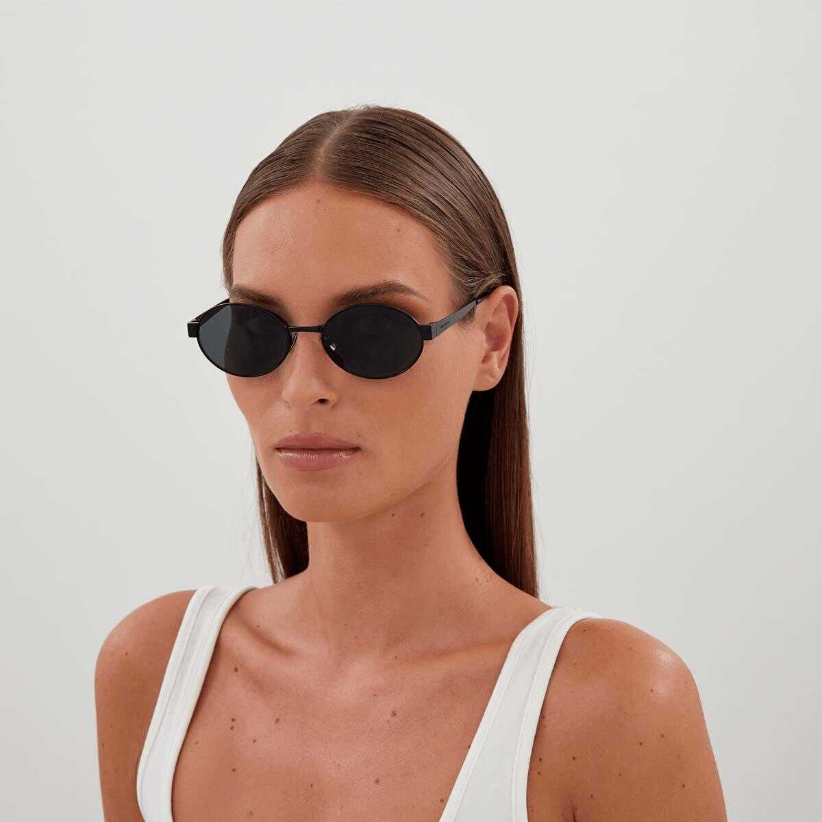 Sunglasses Saint Laurent Eyewear Black Black Oval Metal Unisex
