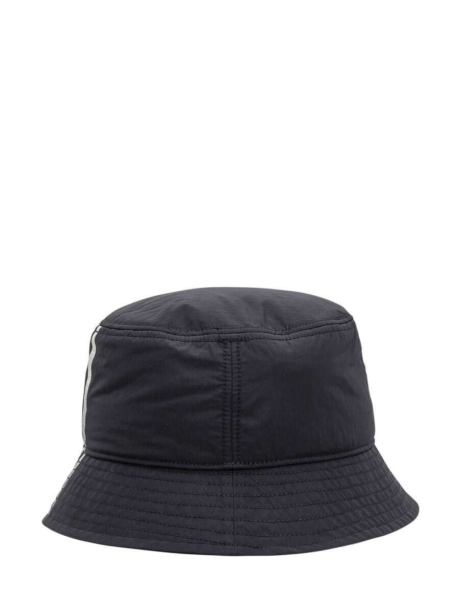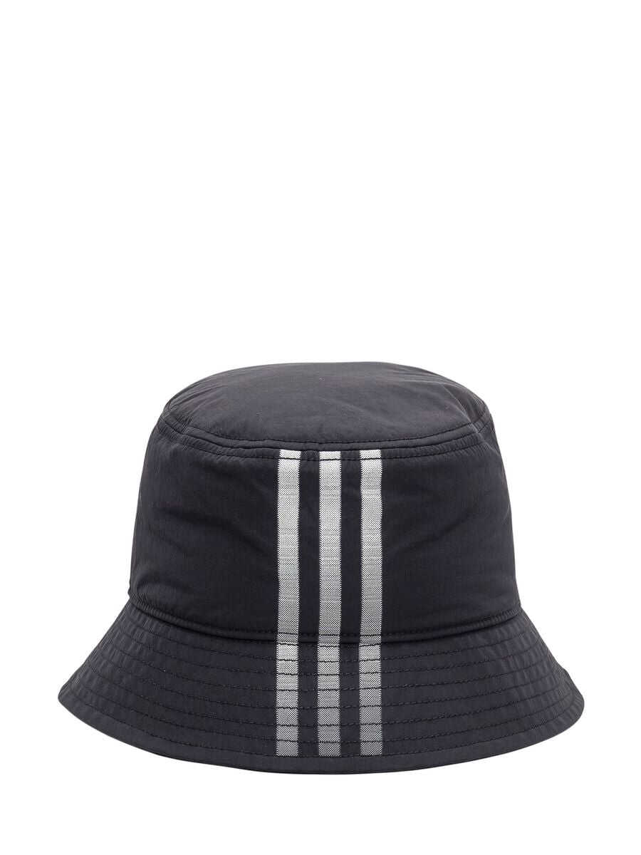 Black bucket hat. Y-3 logo on the front. Three stripes on the opposite side.