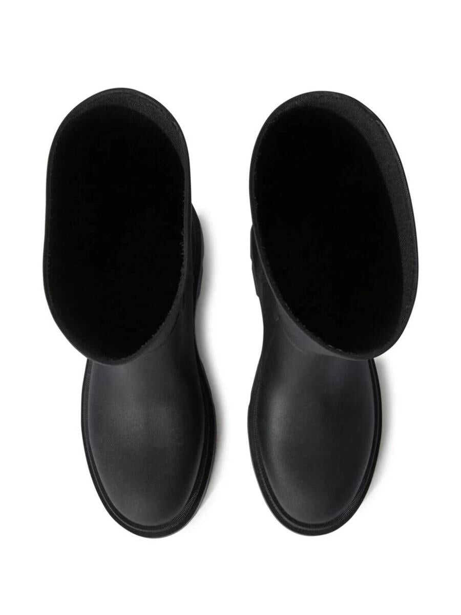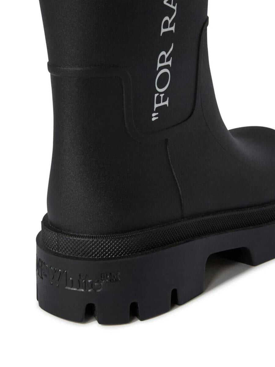 black slogan print to the side round toe pull-on style mid-calf length rubber lug sole