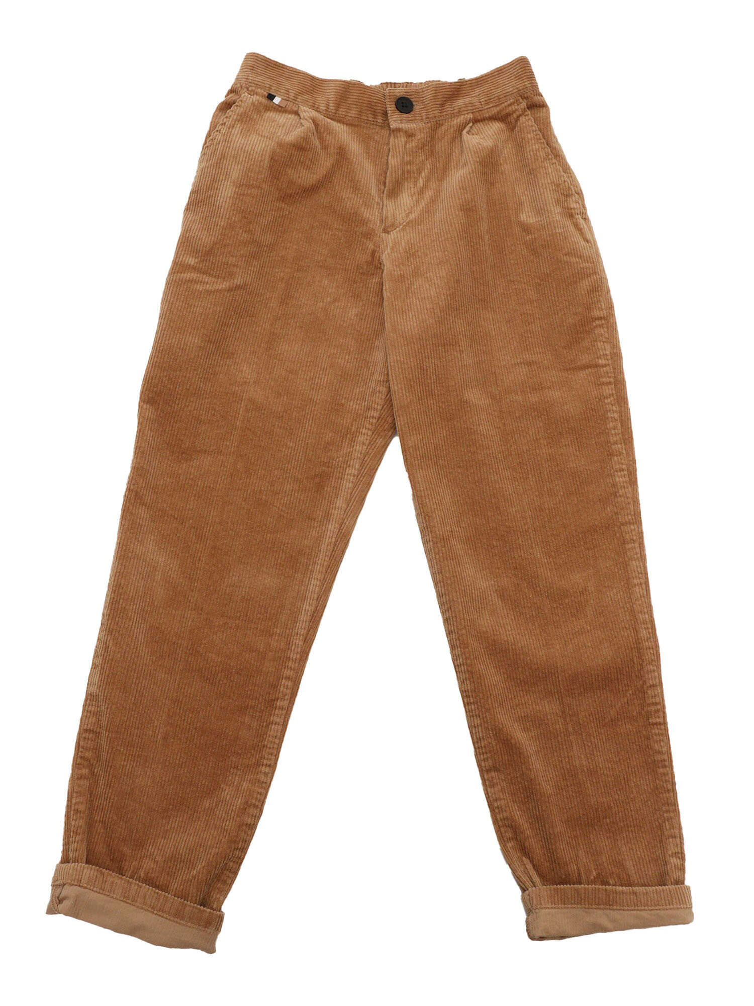 Corduroy pants in cotton elastane, side pockets, tricolor label on the belt, one pocket at the back.