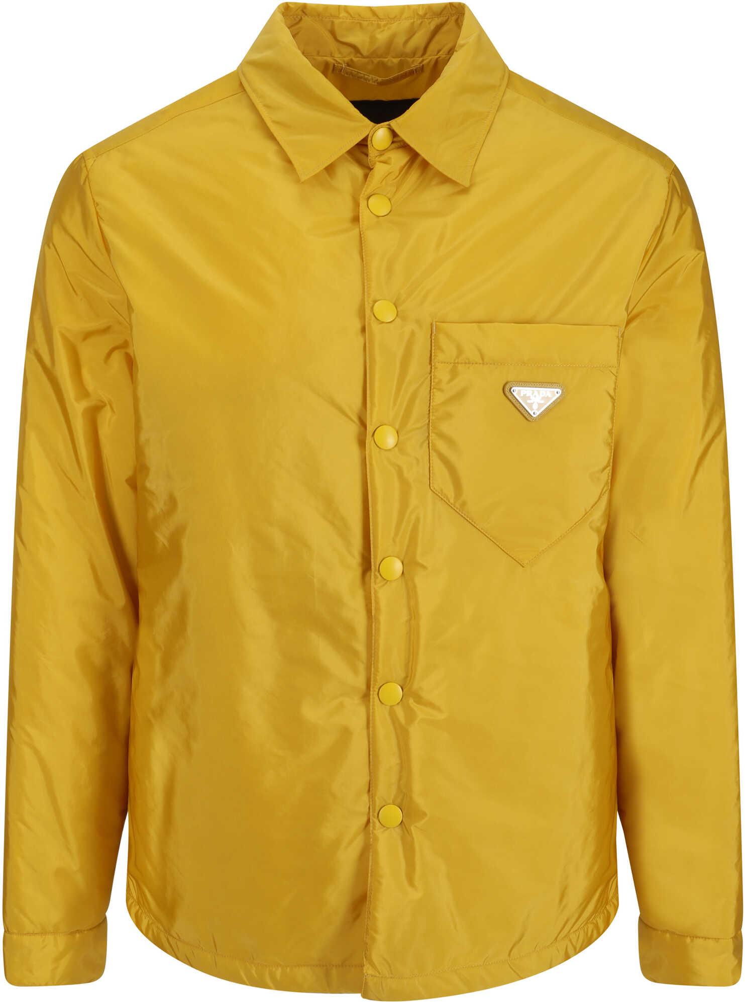 Re-Nylon Jacket by Prada featuring a shirt style, quilted design on the inside, classic collar, snap button closure, a slit pocket appliqué on the front with iconic enameled triangular signature brand plaque detail, monochrome pattern, regular fit.