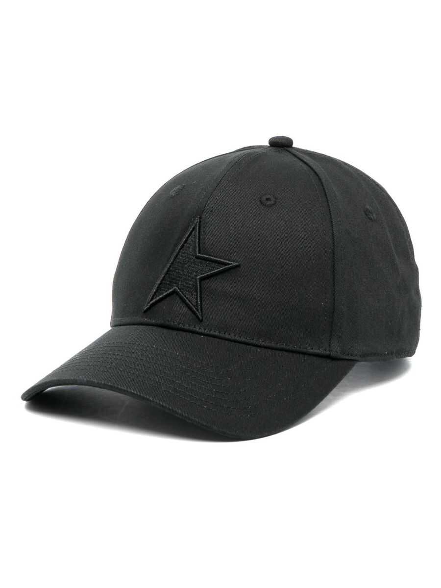black cotton star patch detail curved peak adjustable press-stud fastening to the rear pull-on style