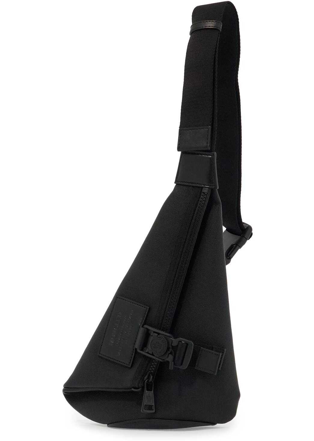 The Nakoa shoulder bag by Moncler is made of coated canvas with a leather logo patch applied on the front pocket, closed with a magnetic buckle. The main compartment has a zip closure and the interior is lined with an open pocket and an adjustable strap in ribbon. Tonal metal accessories complete the design.