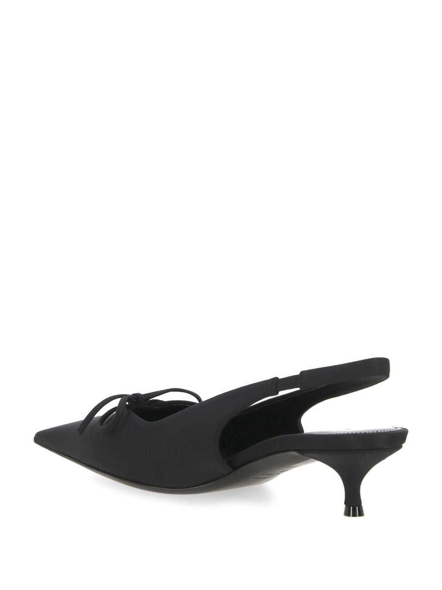 Balenciaga's slingbacks crafted in black spandex with front decorative bow. Featuring an elongated pointed toe, elasticated ankle strap, leather lining and leather sole. The design is completed by a covered kitten heel.