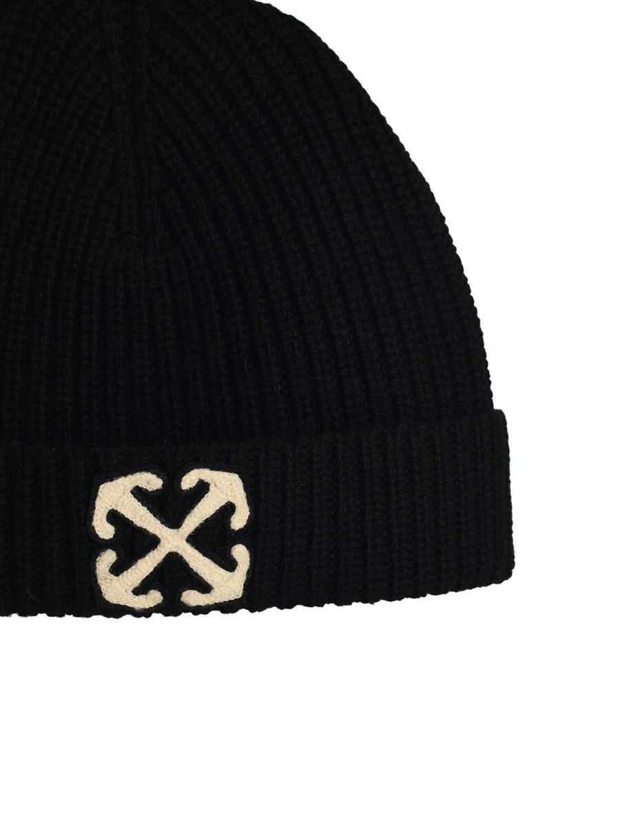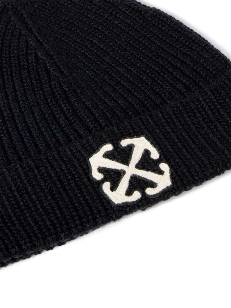 - Off-White - Beanie with logo - Wool - Black - Ribbed texture - Front arrow motif - Men's