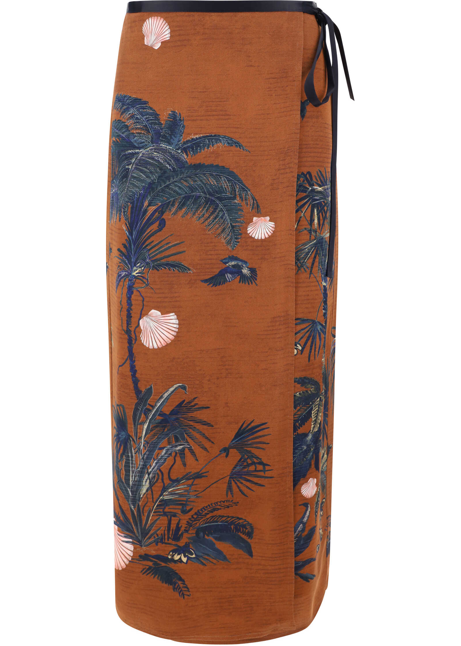 Sacred Forest Midi Skirt by Forte Forte, pareo pattern closable by contrasting satin knotted ribbon, high waist, forest pattern, regular fit.