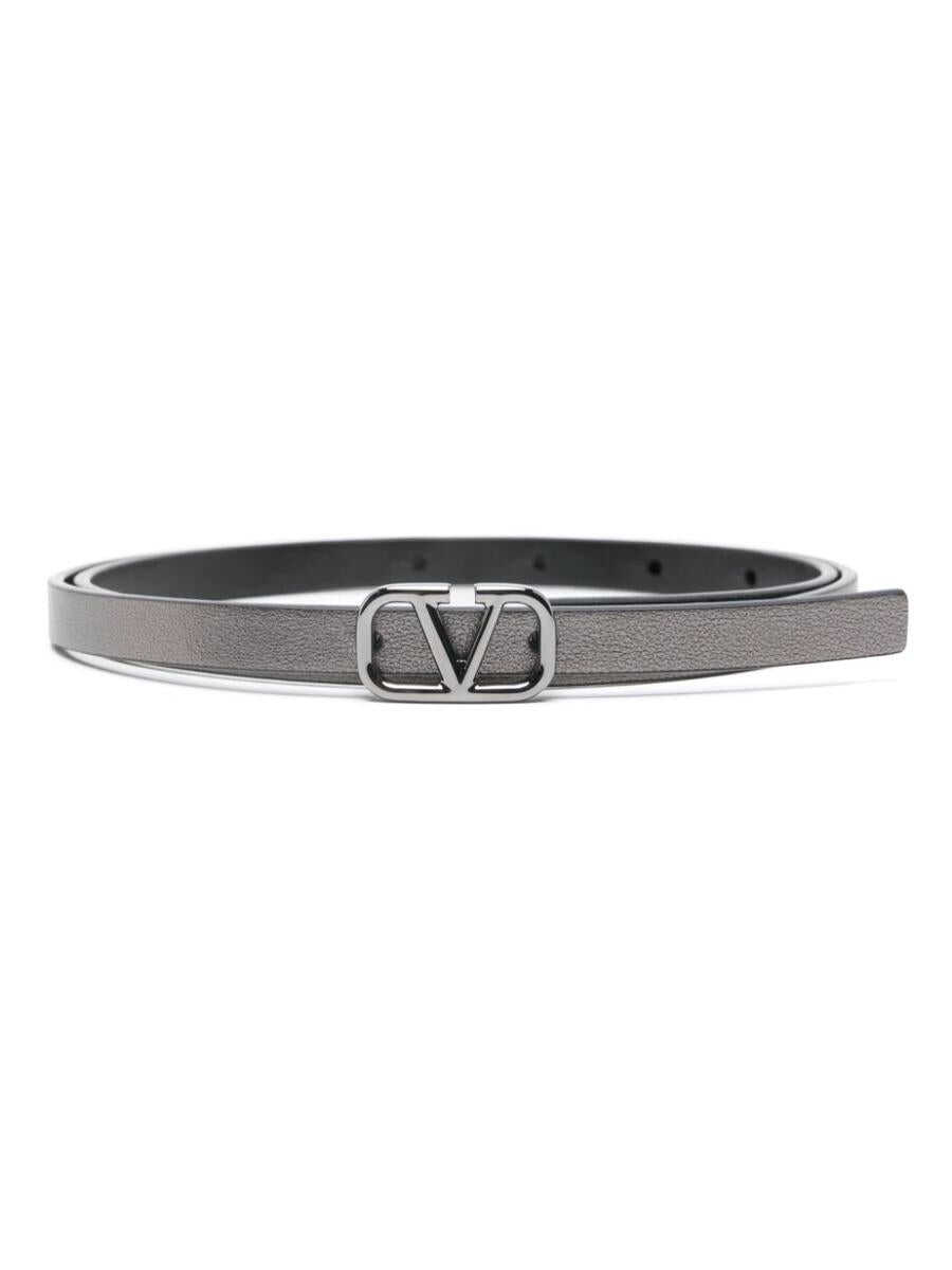 charcoal grey leather smooth grain VLogo Signature logo-buckle fastening punched holes adjustable fit