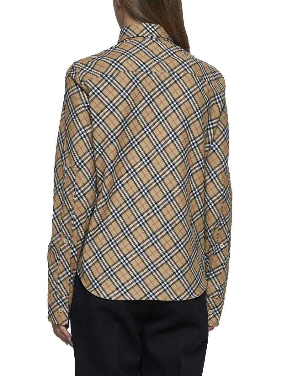 Burberry's cotton shirt featuring iconic check print in beige tones, pointed button-down collar, front buttoning and cuffs, rounded hem and embroidered logo on the front.