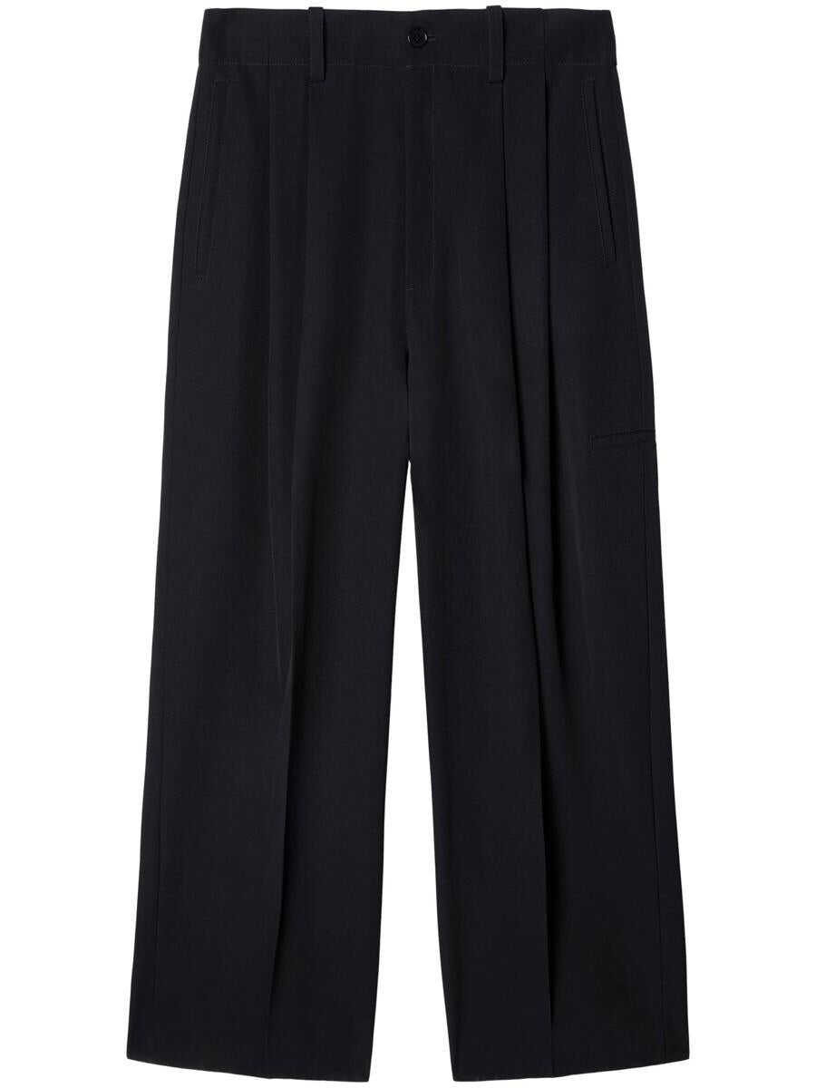 black virgin wool embroidered logo dart detailing concealed fly and button fastening belt loops two side inset pockets two rear welt pockets straight leg