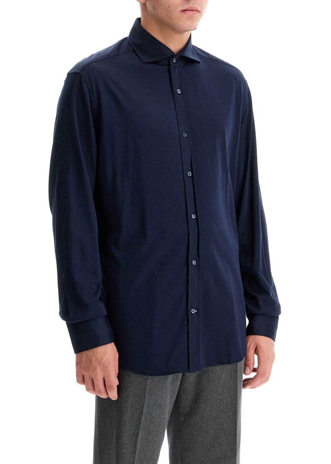 Crafted in lightweight silk and cotton jersey, this Brunello Cucinelli shirt features a French collar, button placket, and two-button straight cuffs. Regular fit. The model is 182 cm tall and wears size L.