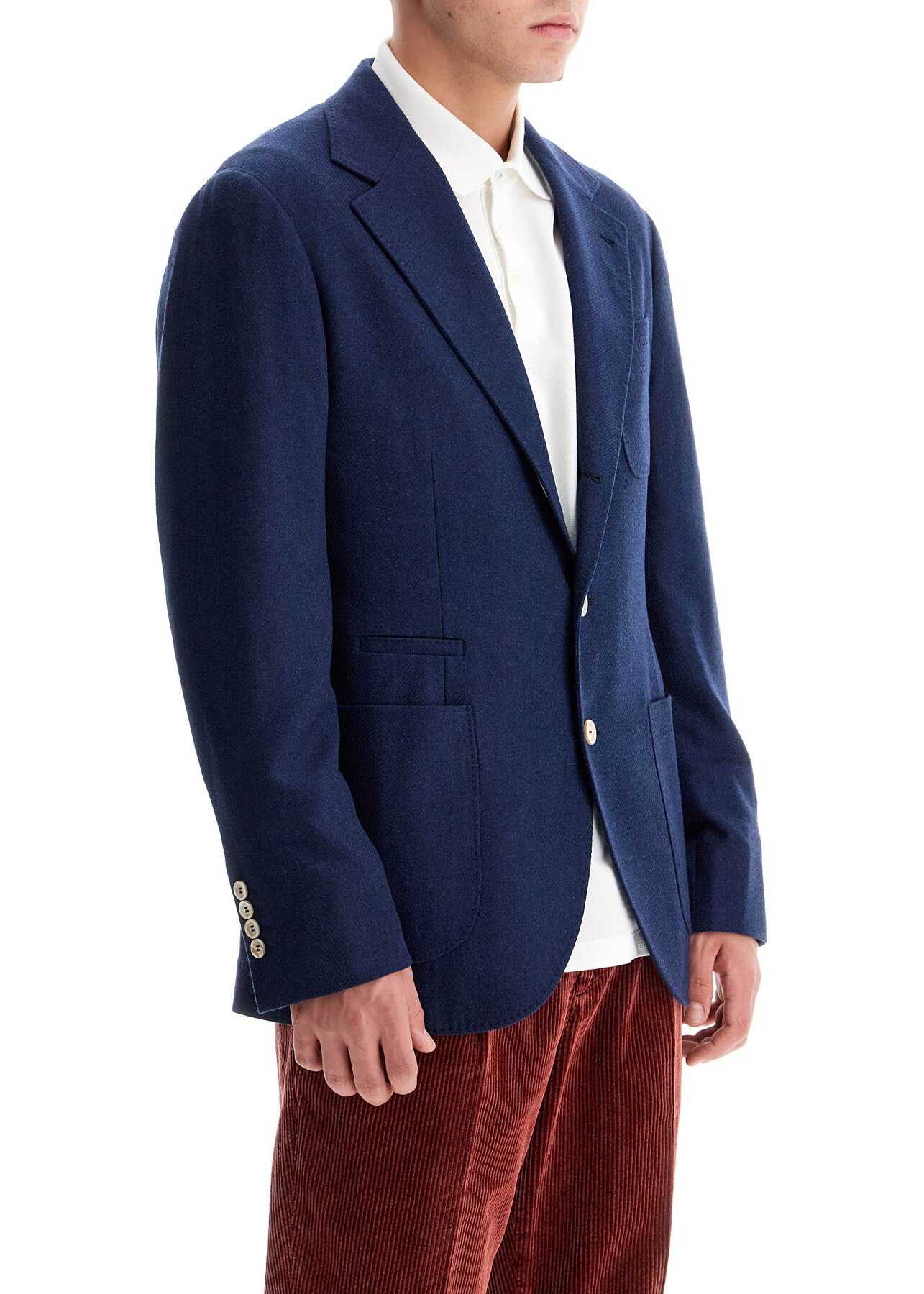 The Brunello Cucinelli deconstructed jacket is made of fine wool, silk and cashmere twill with a single-breasted three-button design. It features a slim fit with a double back vent, classic lapels and a semi-lined interior. Three patch pockets and a ticket pocket complete the garment. The model is 182 cm tall and wears size IT 48.