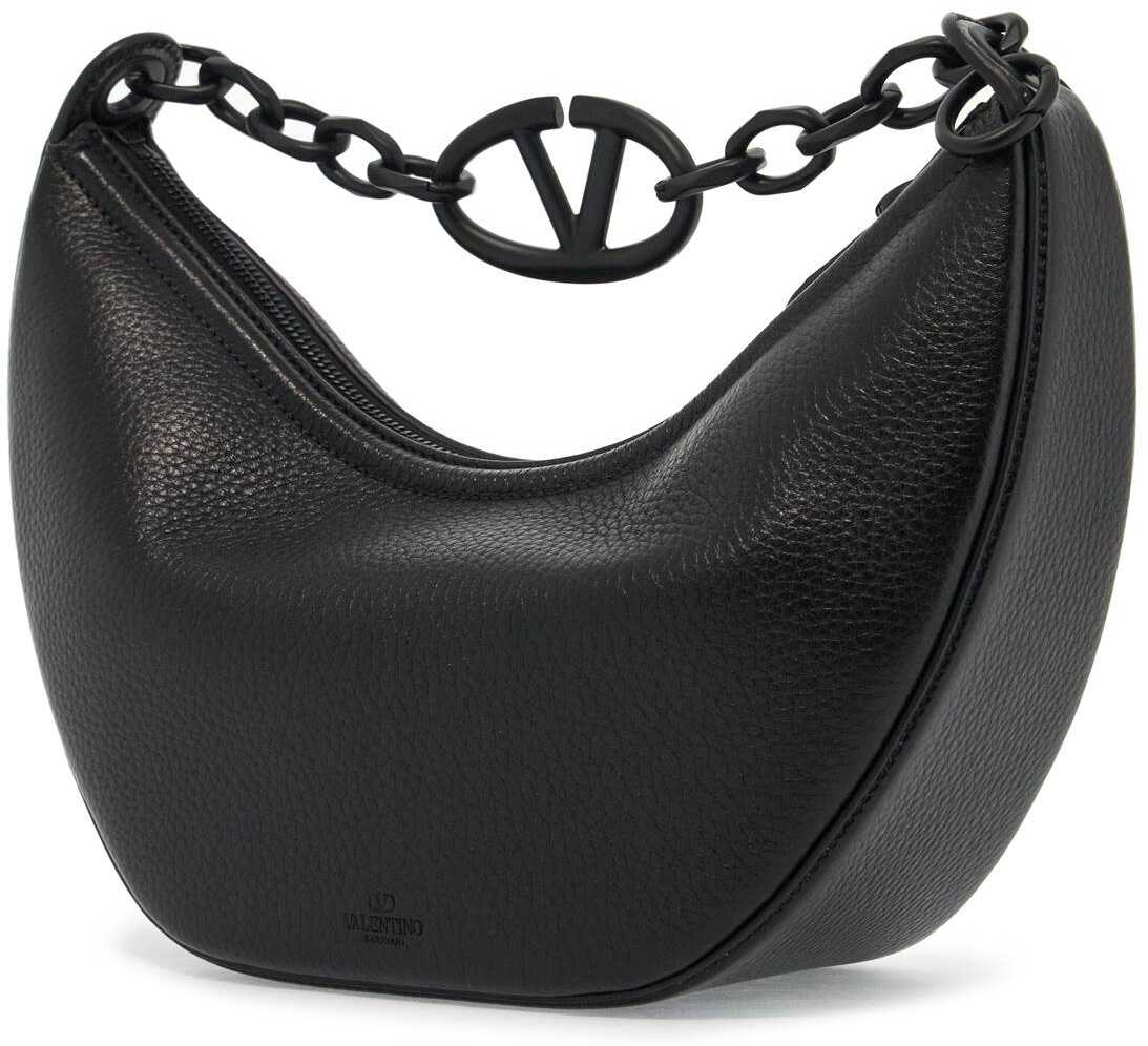 The small VLogo Moon Bag by Valentino Garavani is a hobo bag made of hammered leather and features a chain handle detailed with the Signature VLogo element. Its design is versatile, thanks to the additional leather shoulder strap, and it has a top zip closure, a nappa interior with a flat pocket, and matte tone-on-tone metallic accessories.