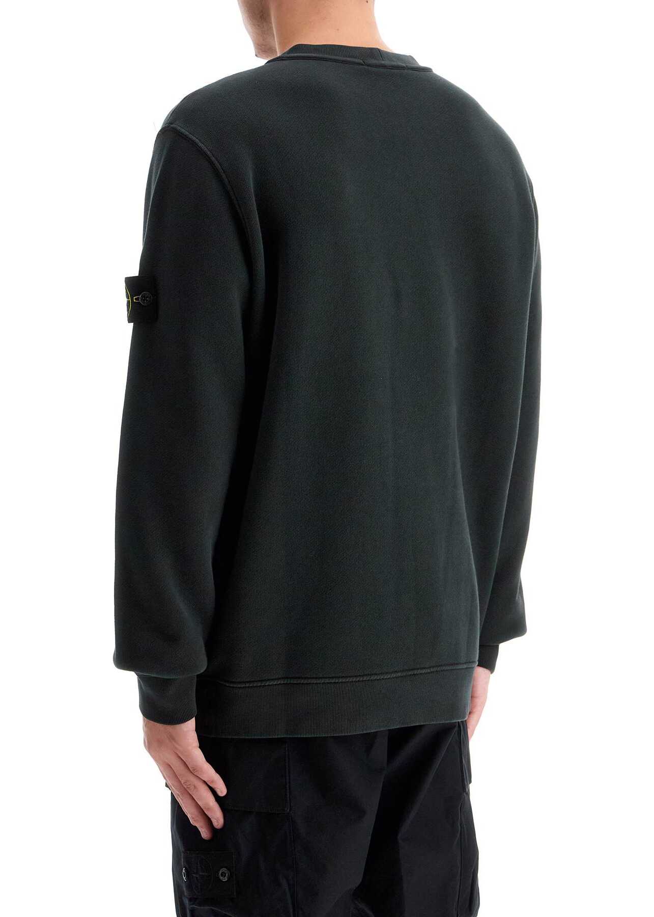 This Stone Island crewneck sweatshirt is made of soft French terry organic cotton, garment-dyed for a unique color. It features ribbed detailing on the collar, cuffs, and hem, as well as a logo badge on the left sleeve. The fit is regular and the model is 182 cm tall, wearing size L.