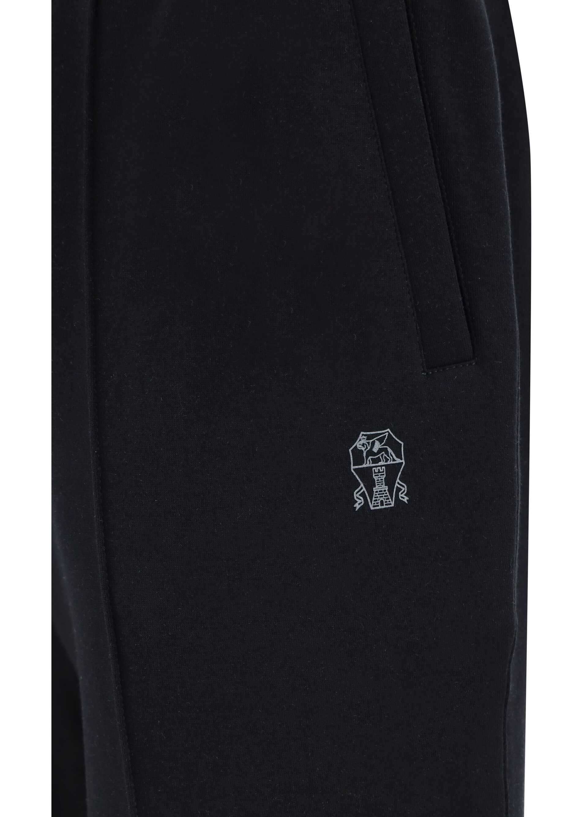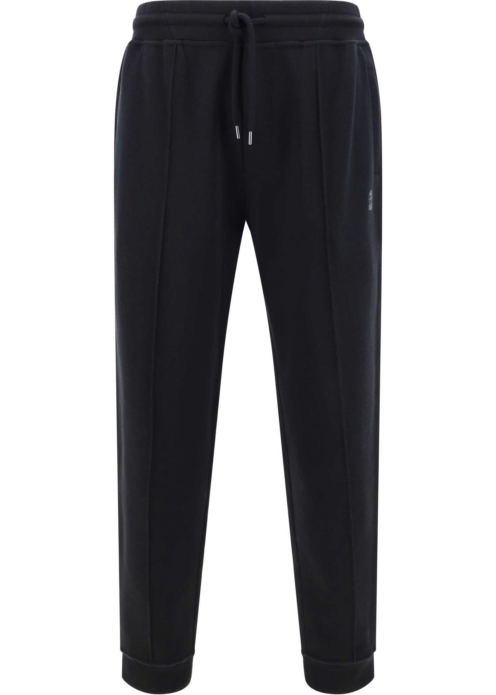 Cotton Sweatpants by Brunello Cucinelli, jogger style, elasticated waistband with drawstring, two side welt pockets, contrasting iconic brand logo on front, two back slit pockets, monochrome pattern, regular fit.