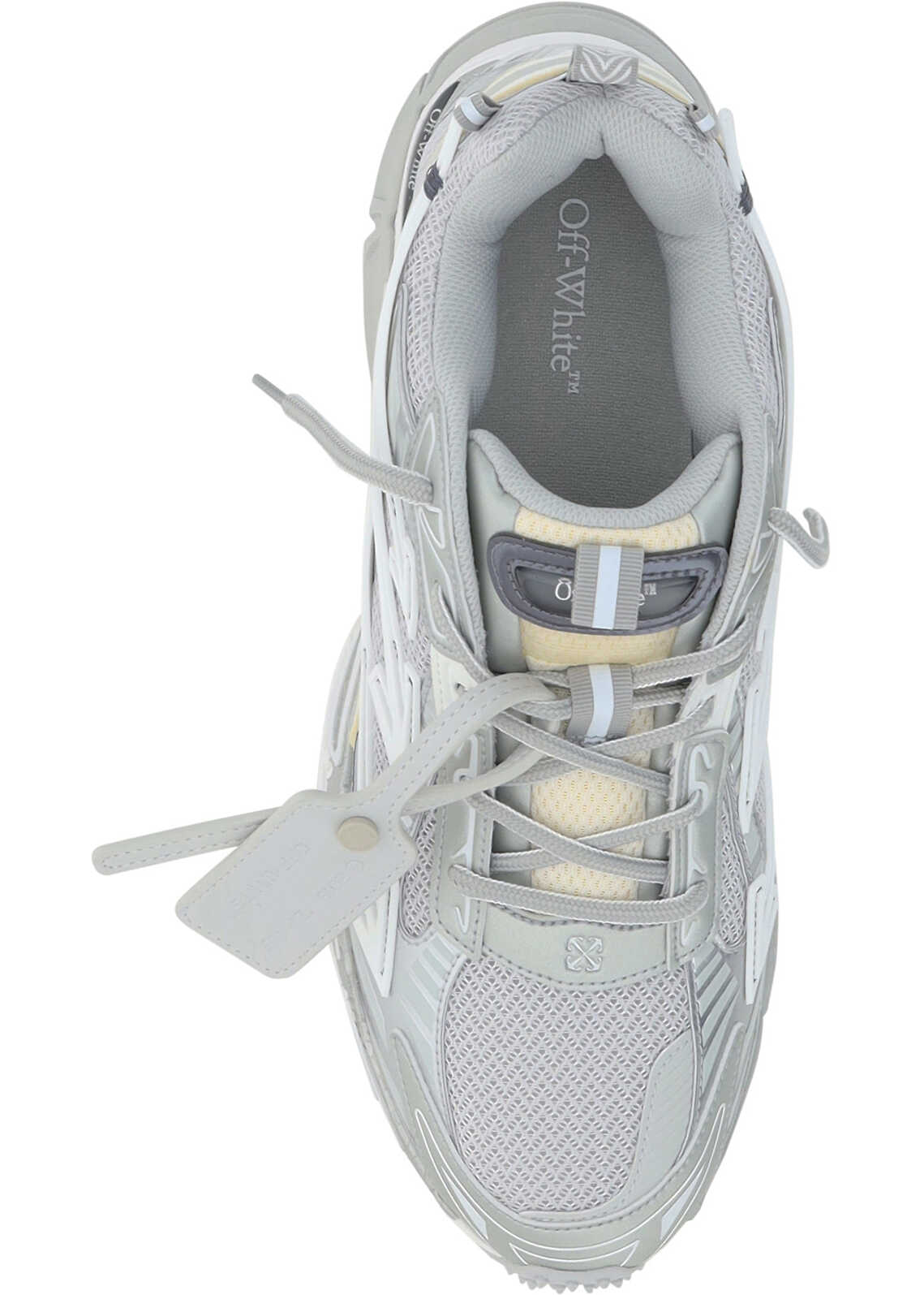 The Off-White Be Right Back Sneakers combine mesh and rubberized leather for a modern and resistant look. The iconic zip tie on the front and the monogram printed on the tongue and insole recall the distinctive design of the brand. The closure is with laces, for an adjustable fit. The shoe has a tapered silhouette, perfect for a bold and contemporary streetwear style.