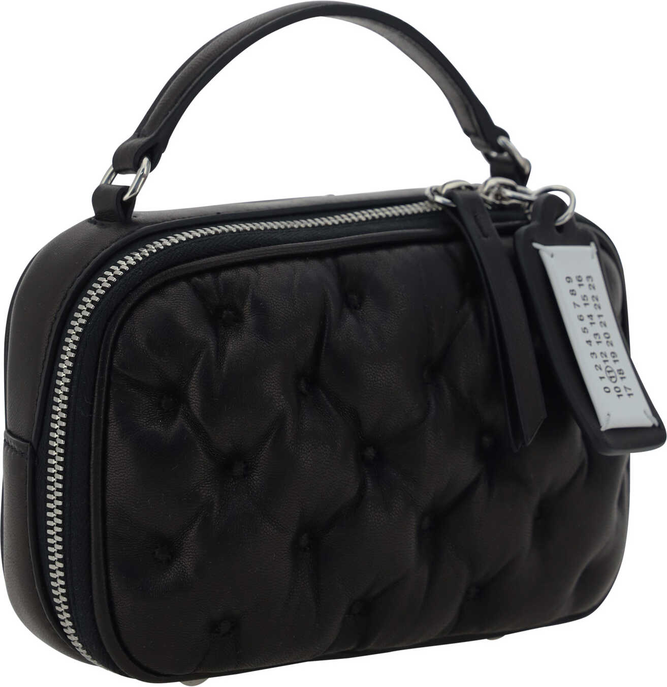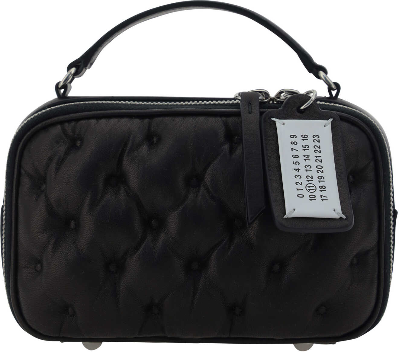 Leather Handbag by Margiela, flat top handle, zipper closure with double slider loop at top, adjustable and removable chain belt and leather detail, single interior compartment, quilted detail on front panel.