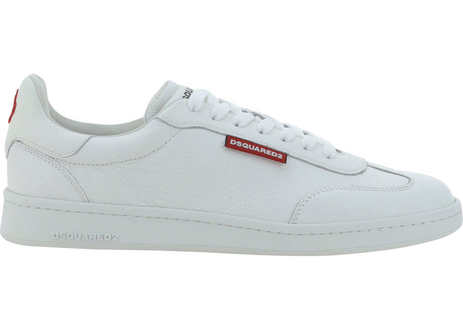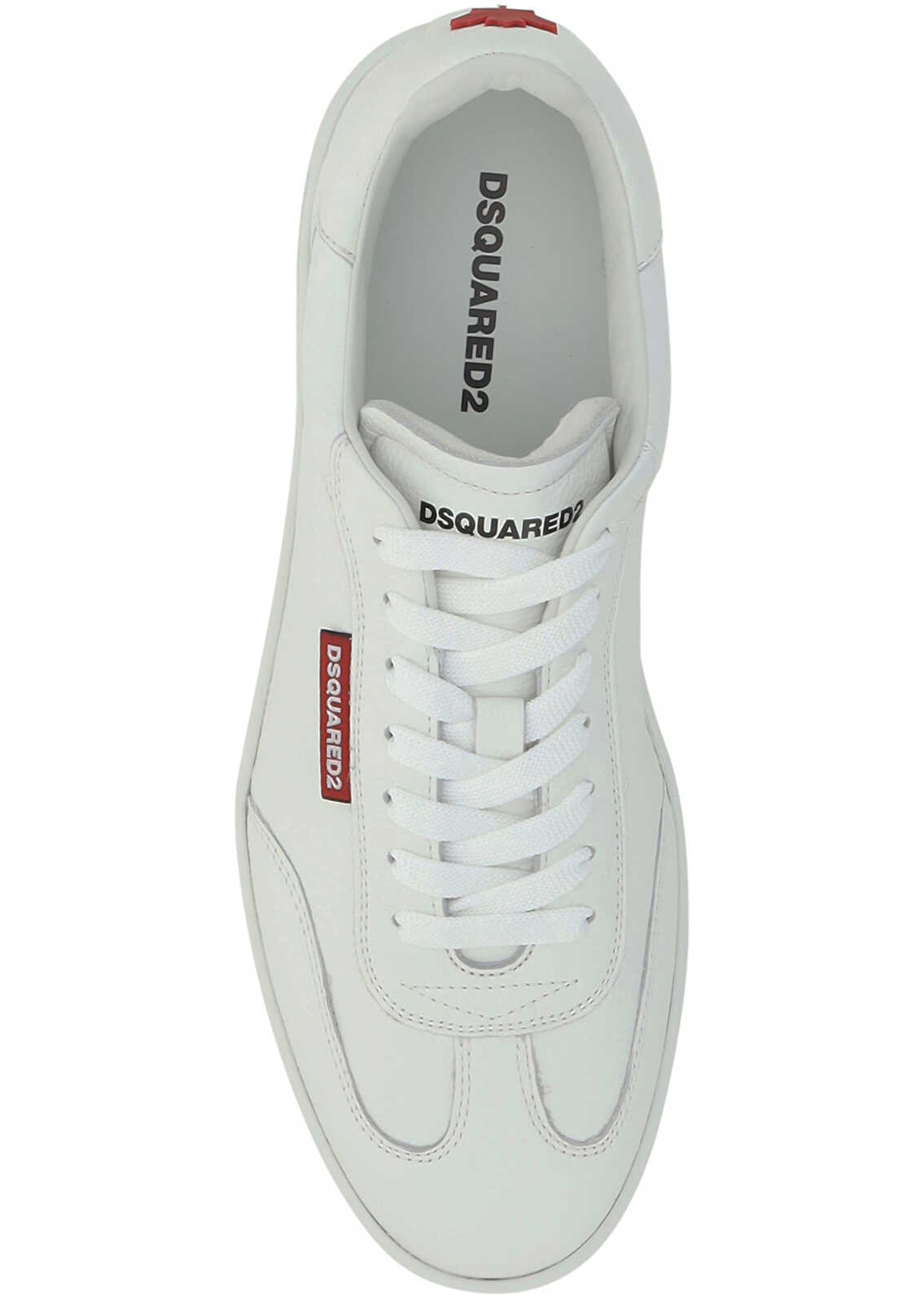 Leather Sneakers by Dsquared2, lace-up front fastening, round toe, platform sole, iconic brand monogram press-stamped on front tongue, contrasting iconic brand monogram label on upper.