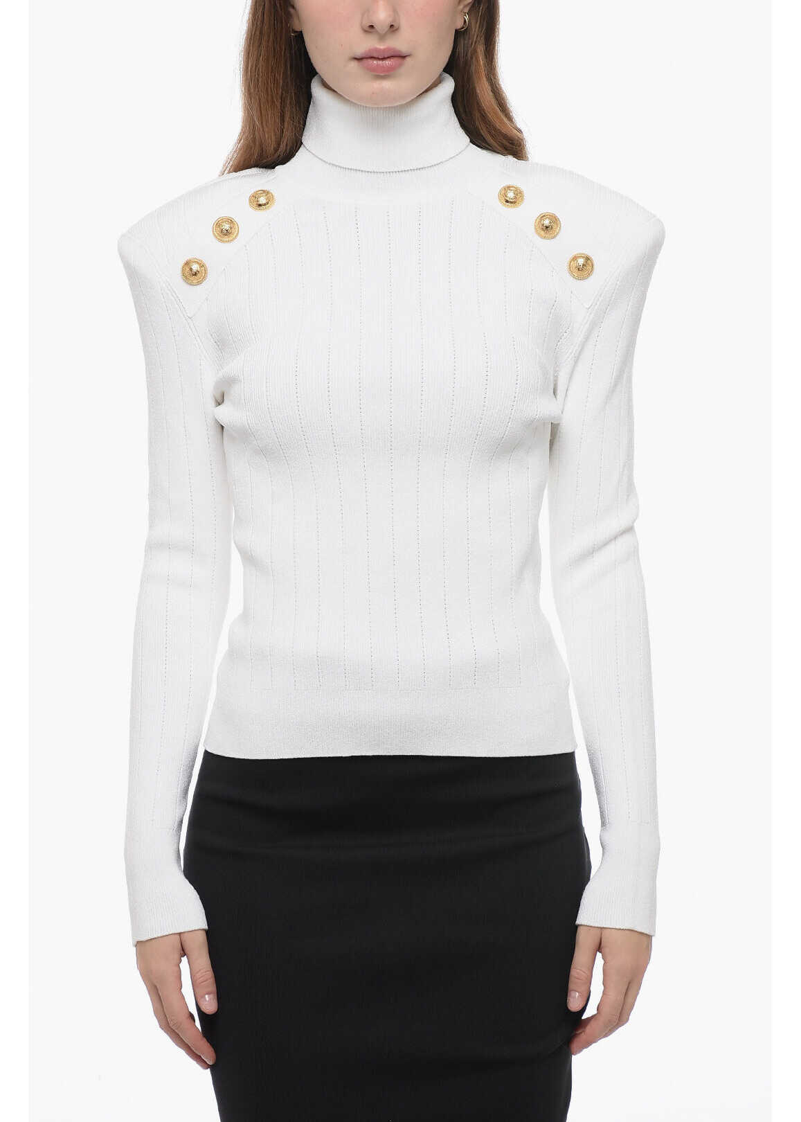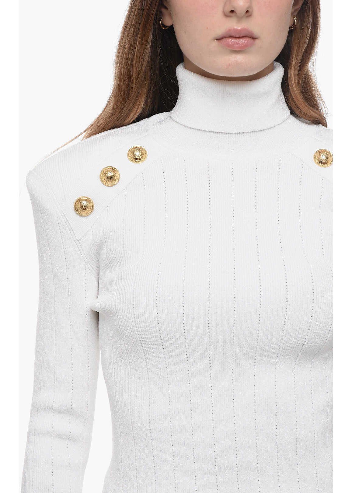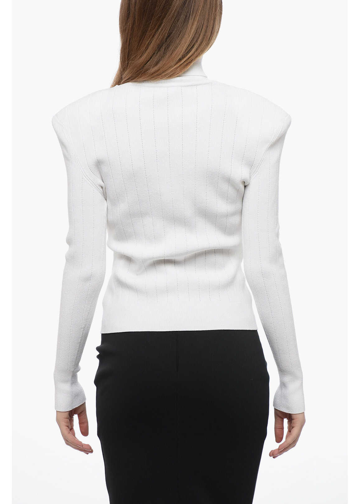Stretch Bejeweled buttons Turtleneck Long sleeves Knit White Made in Italy Autumn-Winter Materials: 83%VI 17%PL Product code: P608772