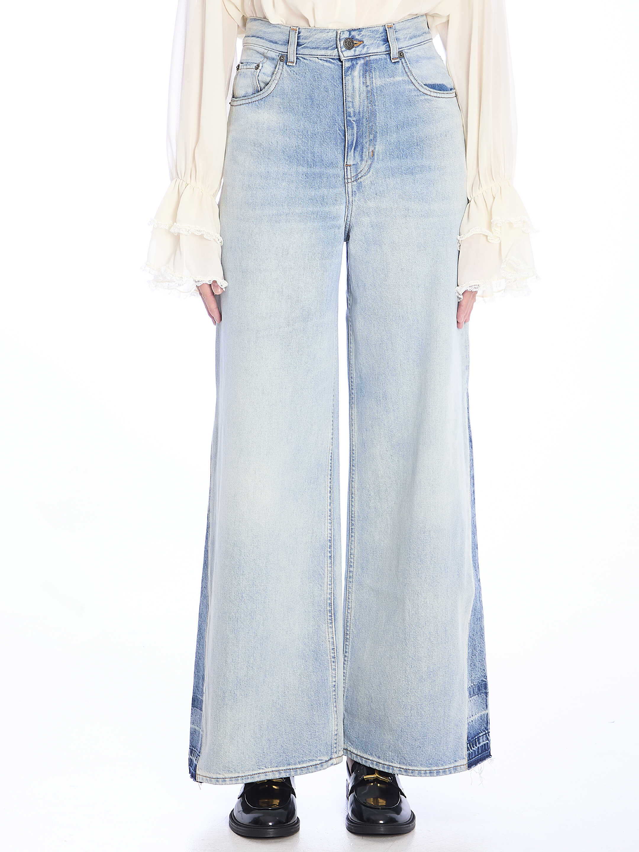 High-waisted wide-leg palazzo jeans in lightweight washed-out organic cotton denim. It features zip and button closure, five-pocket design, belt loops and Chloé half-moon patch at the back. Regular fit.