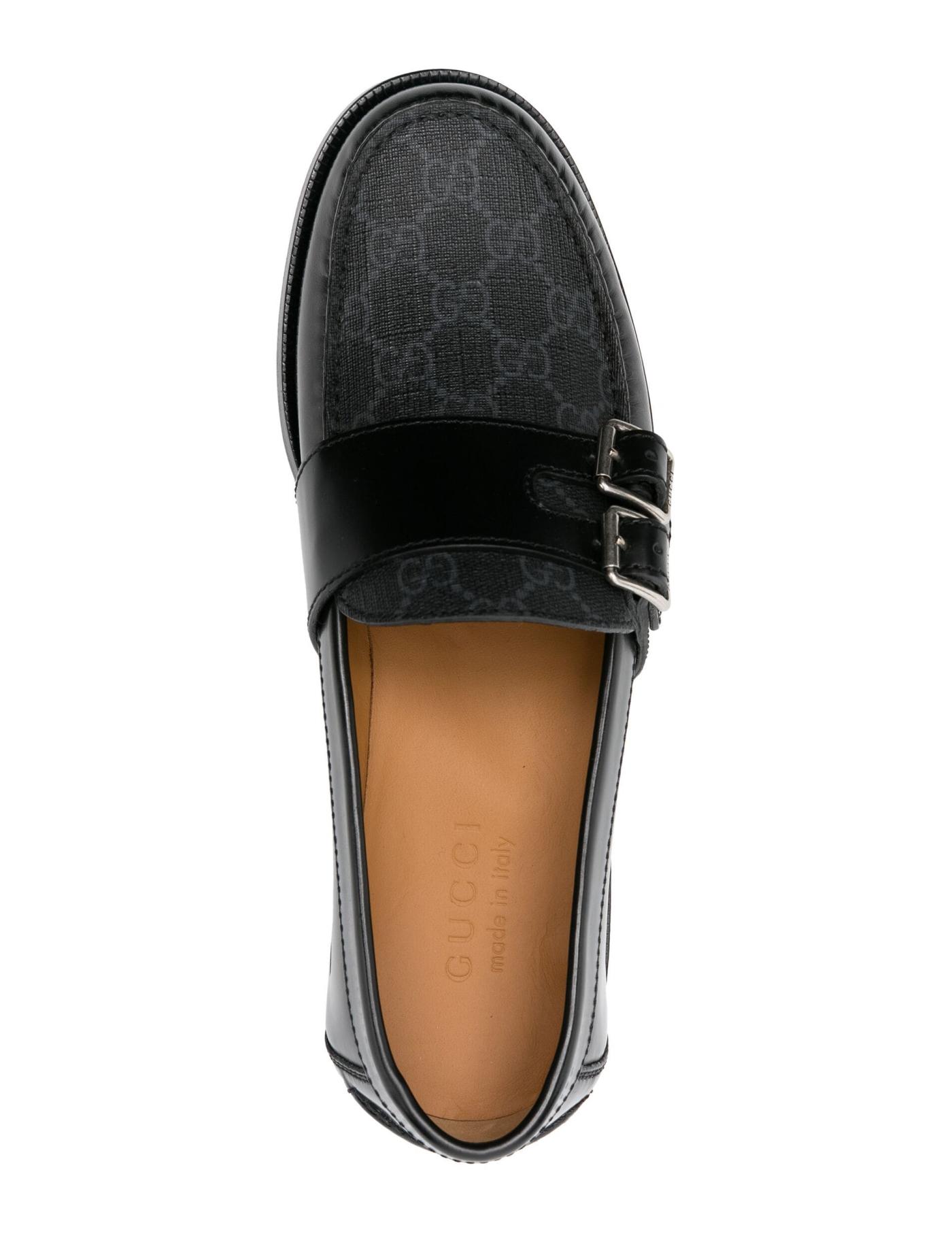 Gucci's classic GG canvas pattern adorns these slip-on loafers. They're crafted from leather and feature two logo-engraved buckles on top.