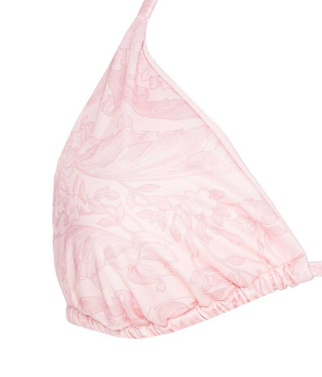 Versace pink swim bikini, Barocco print, laces closure, golden plaque Medusa log on the front, UNIVERSAL SIZE