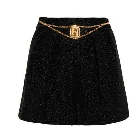 black tweed exposed rear zip fastening mid-rise lurex detailing detachable chain-link waist strap gold-tone logo plaque double dart detailing two side inset pockets straight leg thigh-length