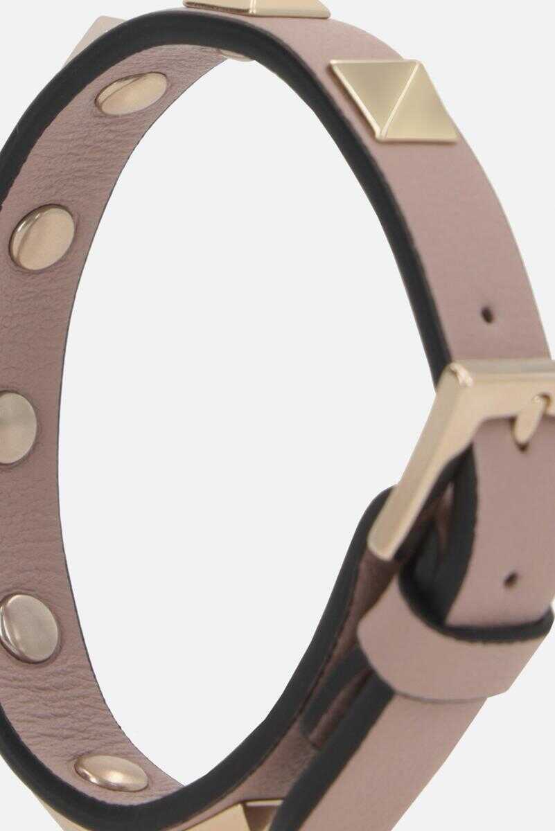 Valentino Garavani bracelet crafted in powder pink smooth leather adorned with signature platinum-tone metal studs. Featuring adjustable closure with metal buckle and internal embossed logo.