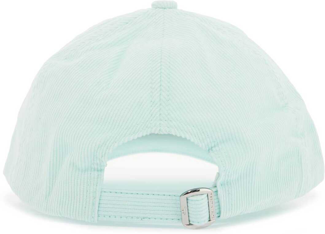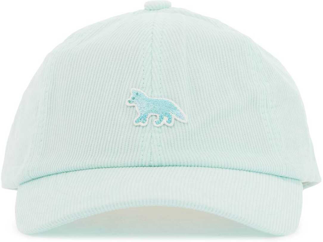 The Maison Kitsuné baseball cap is made of ribbed cotton velvet, constructed with six panels and decorated with an embroidered Baby Fox patch on the front. It features a top button cover, stitched visor, and adjustable strap at the back. Unlined and one size fits all.