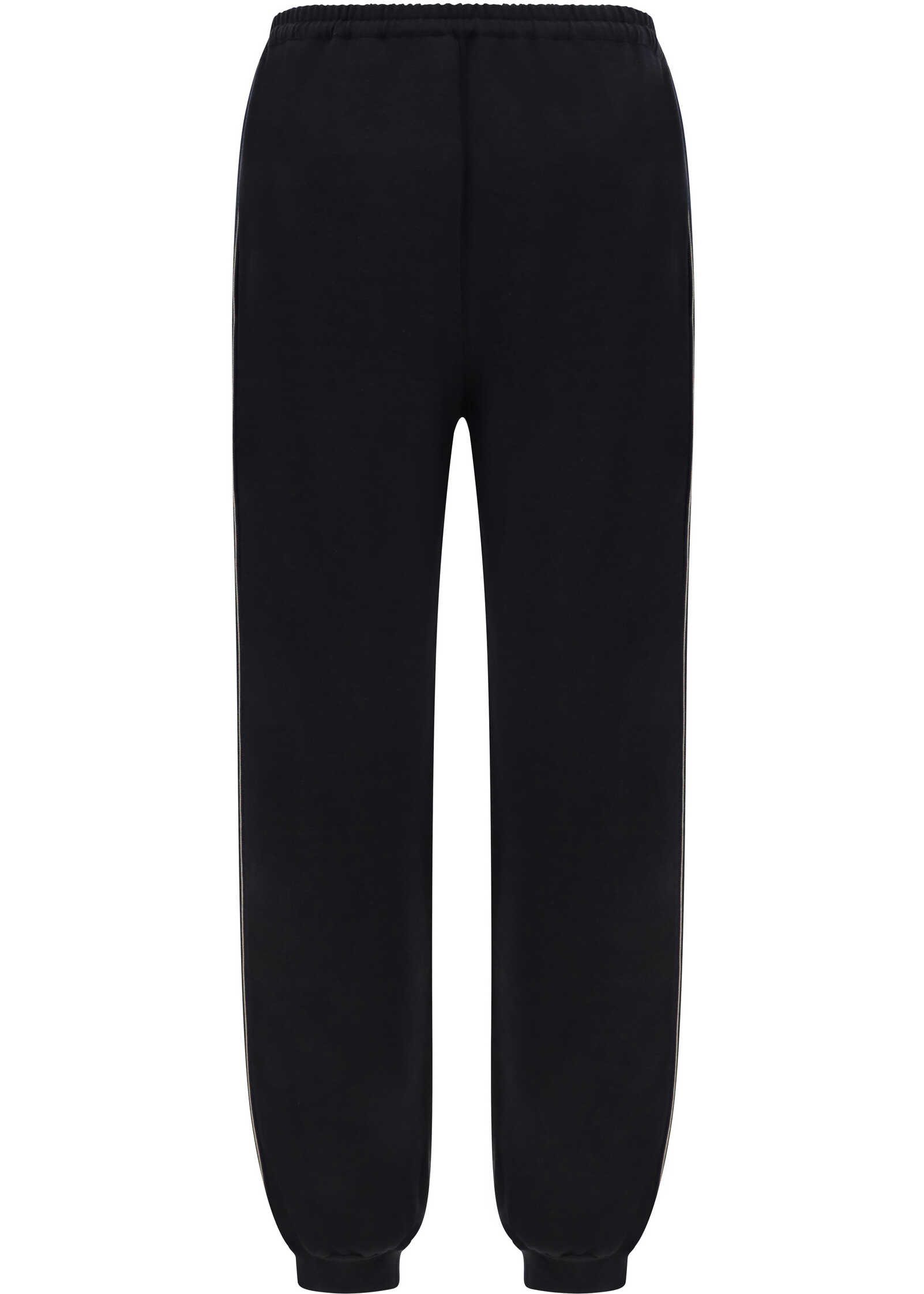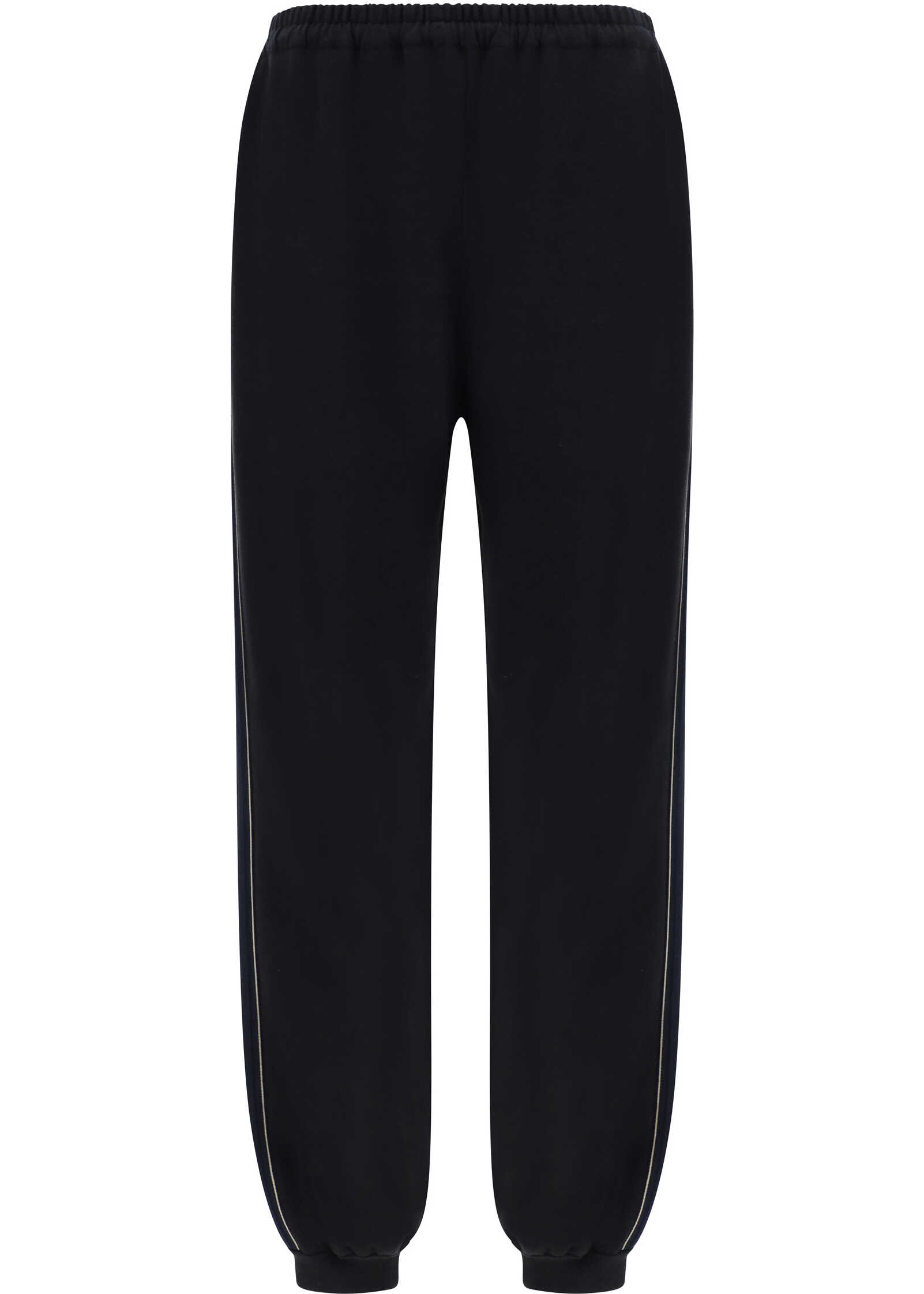 Silk Haron Sweatpants by The Row, jogger style, elastic waistband with drawstring, two side welt pockets, contrasting bands on side panels, regular fit.
