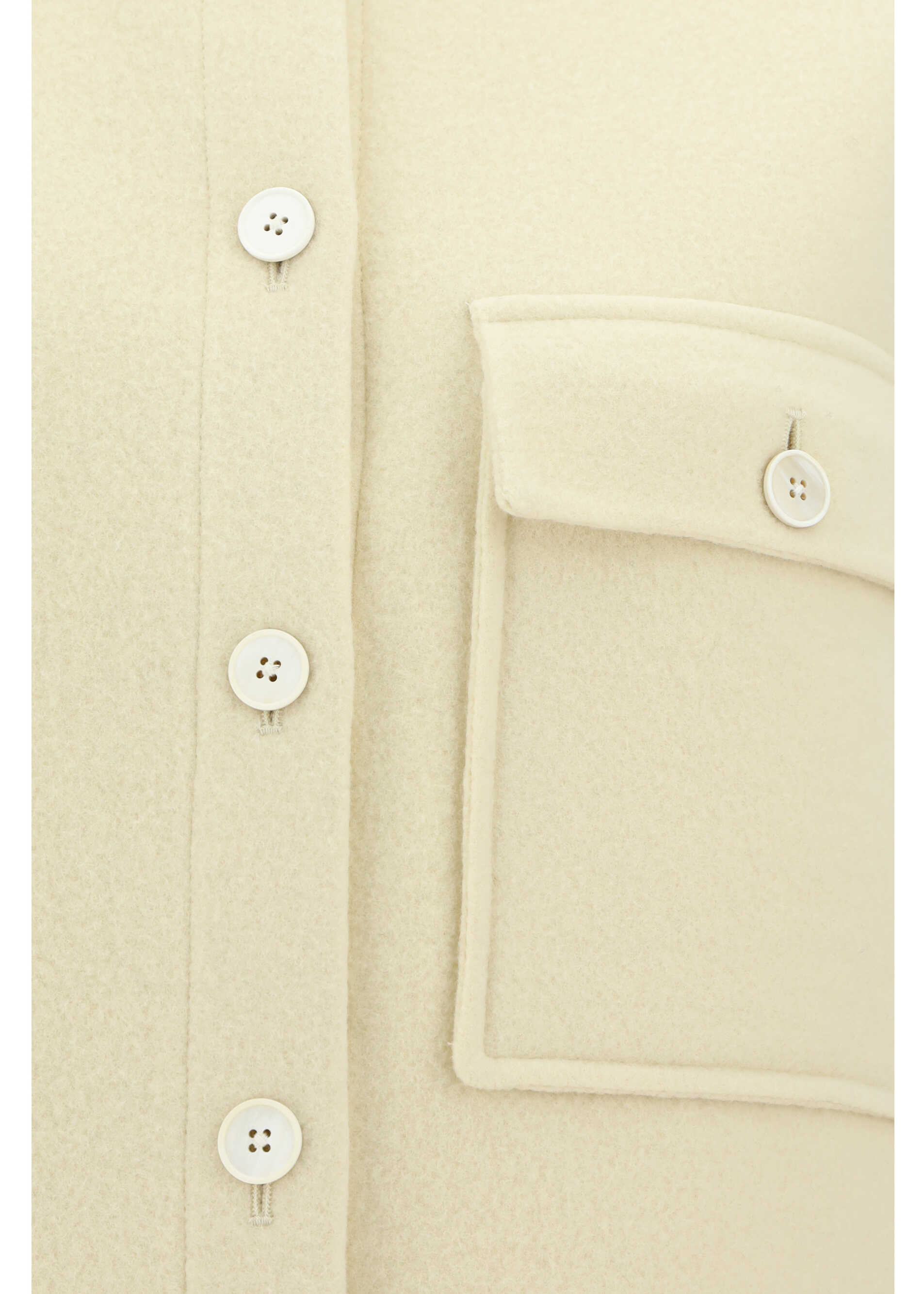 Virgin Wool Jacket by Jil Sander, classic collar, front button closure, one front patch pocket with button flap, iconic brand logo embossed on right sleeve, monochrome pattern, regular fit.