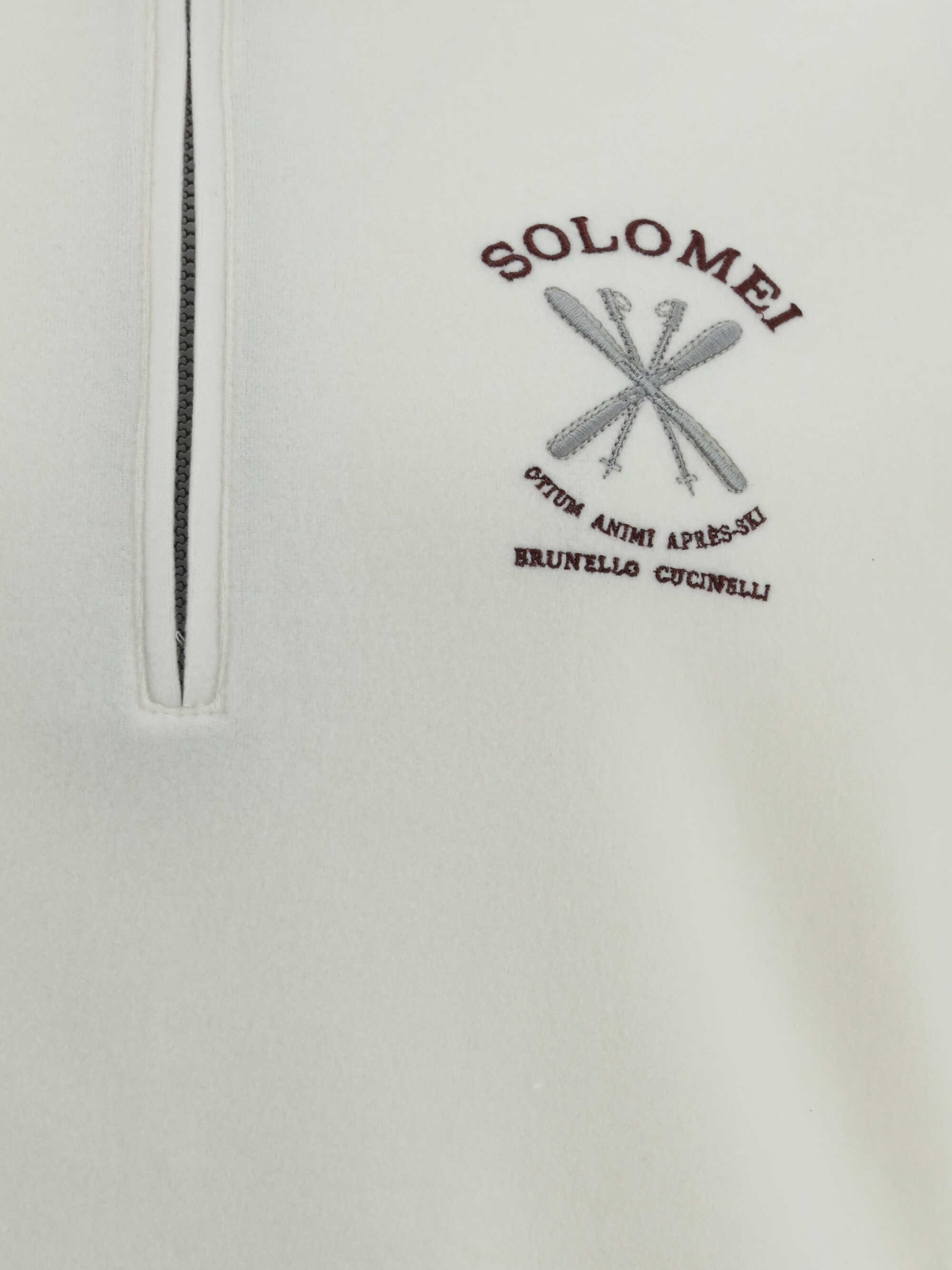 Cashmere Sweatshirt by Brunello Cucinelli, turtleneck design, a midriff zipper, contrasting hems, the brand's iconic monogram applique on the front, a monochrome pattern, and a regular fit.