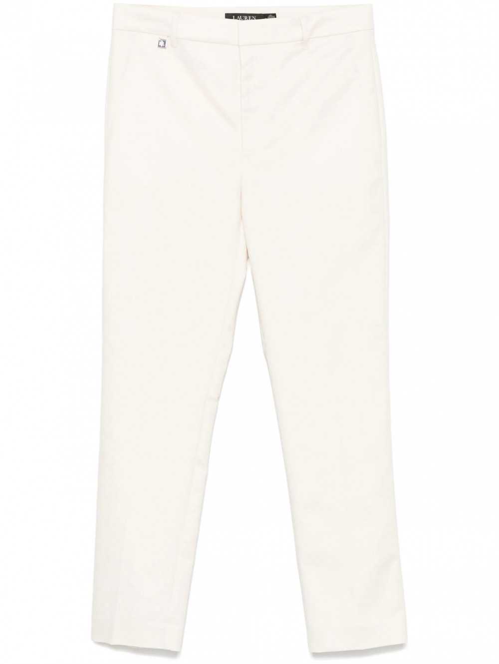 LAUREN RALPH LAUREN stretch cotton pants, with side welt pockets, zip and clip closure, iconic front plaque.
