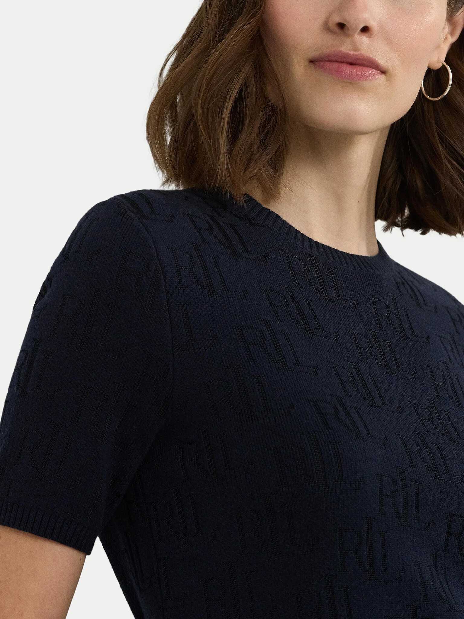 "LAUREN RALPH LAUREN short-sleeve pullover, crew neck, ribbed edges, logo pattern."